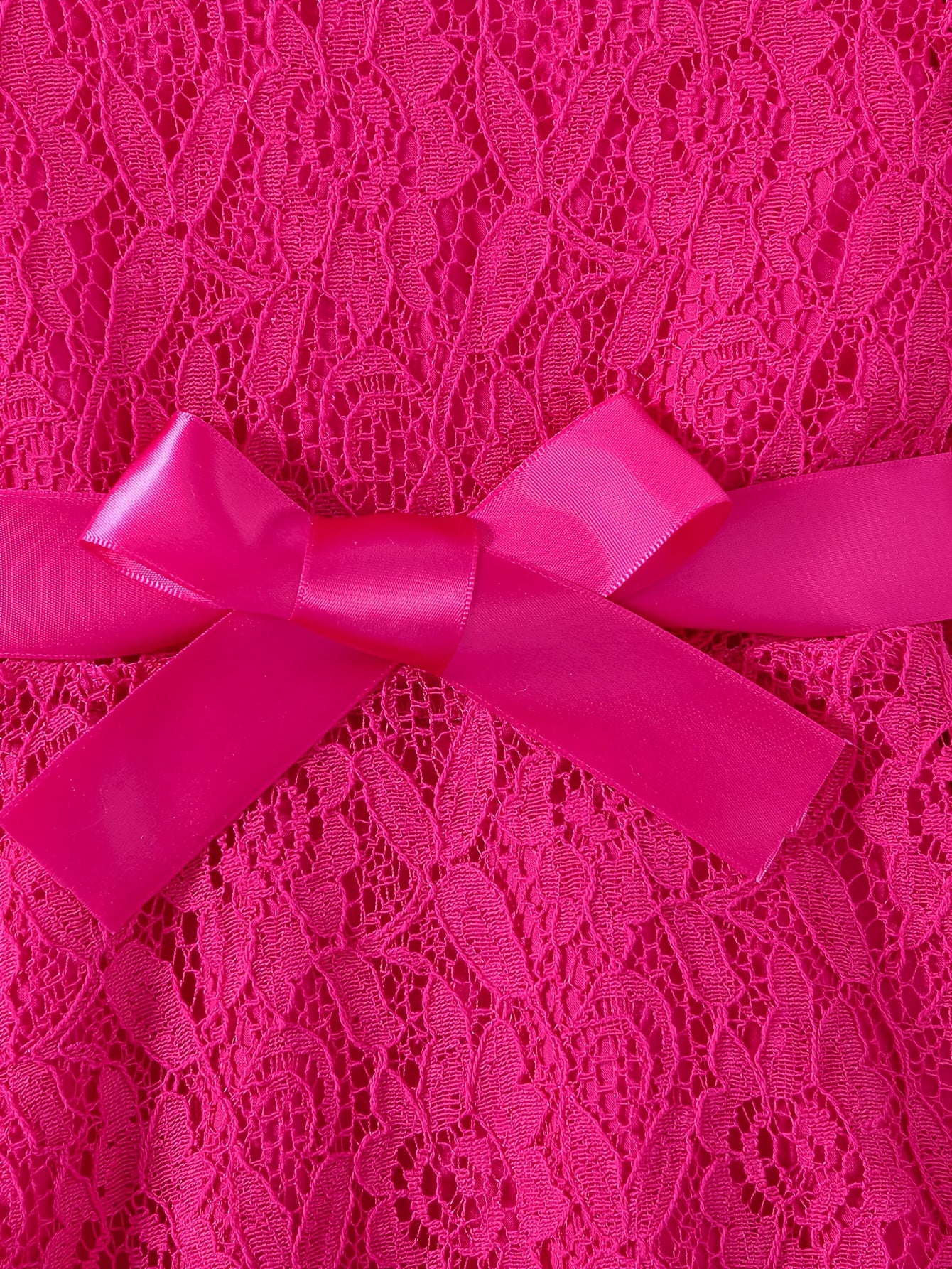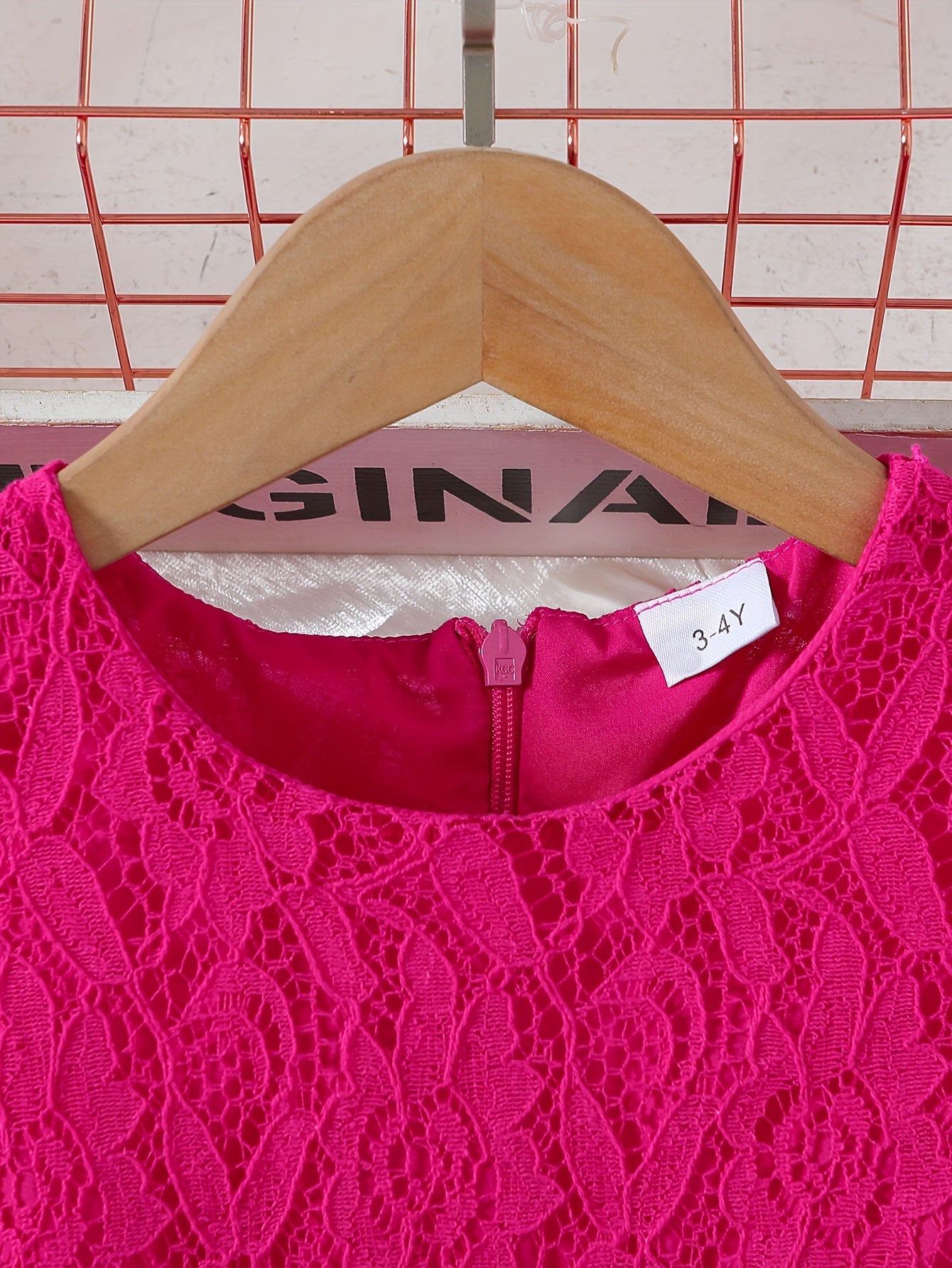 Girls' Summer Dress with Lace Detail Belt Flutter Sleeves Knee Length Fit and Flare Solid Polyester