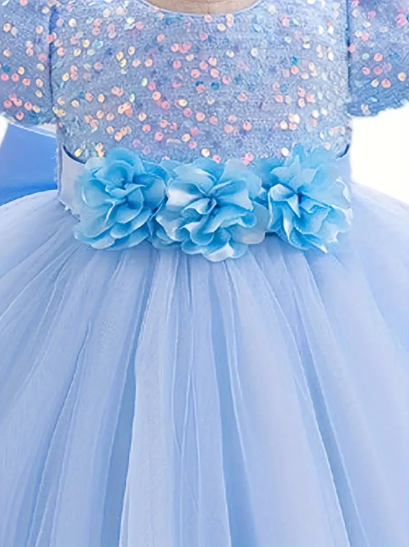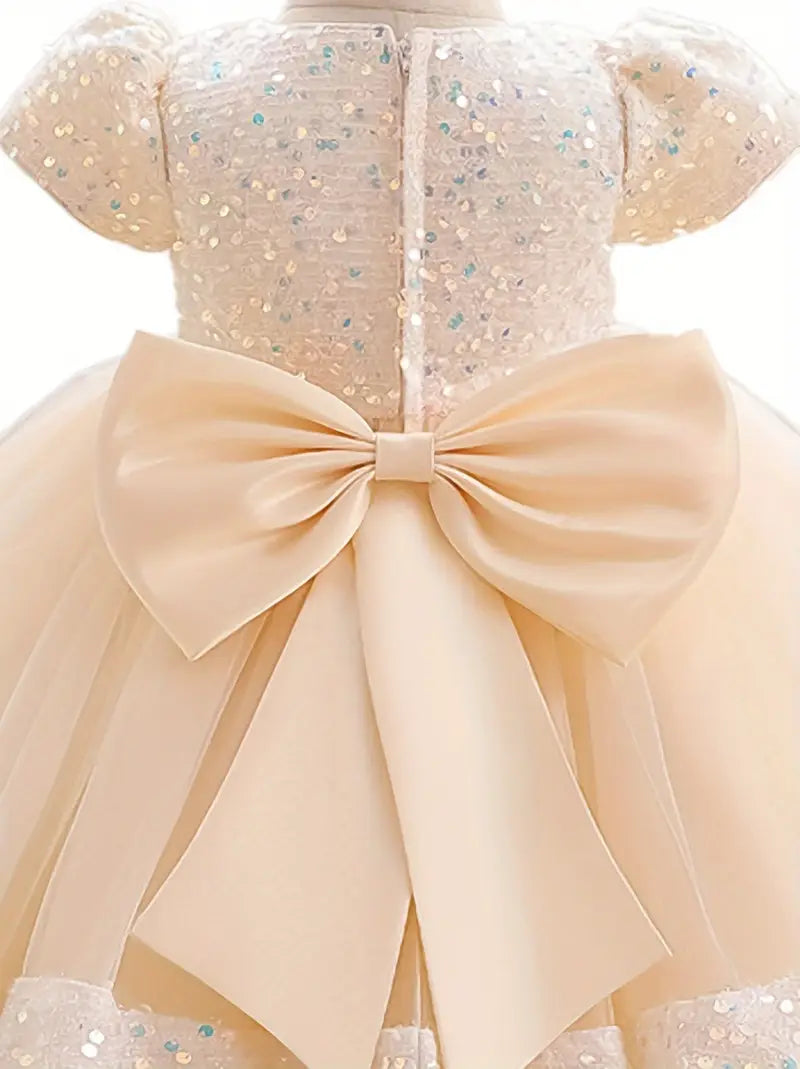 Girls Red Princess Dress with Sequin Tulle Overlay Boho Style for All Seasons
