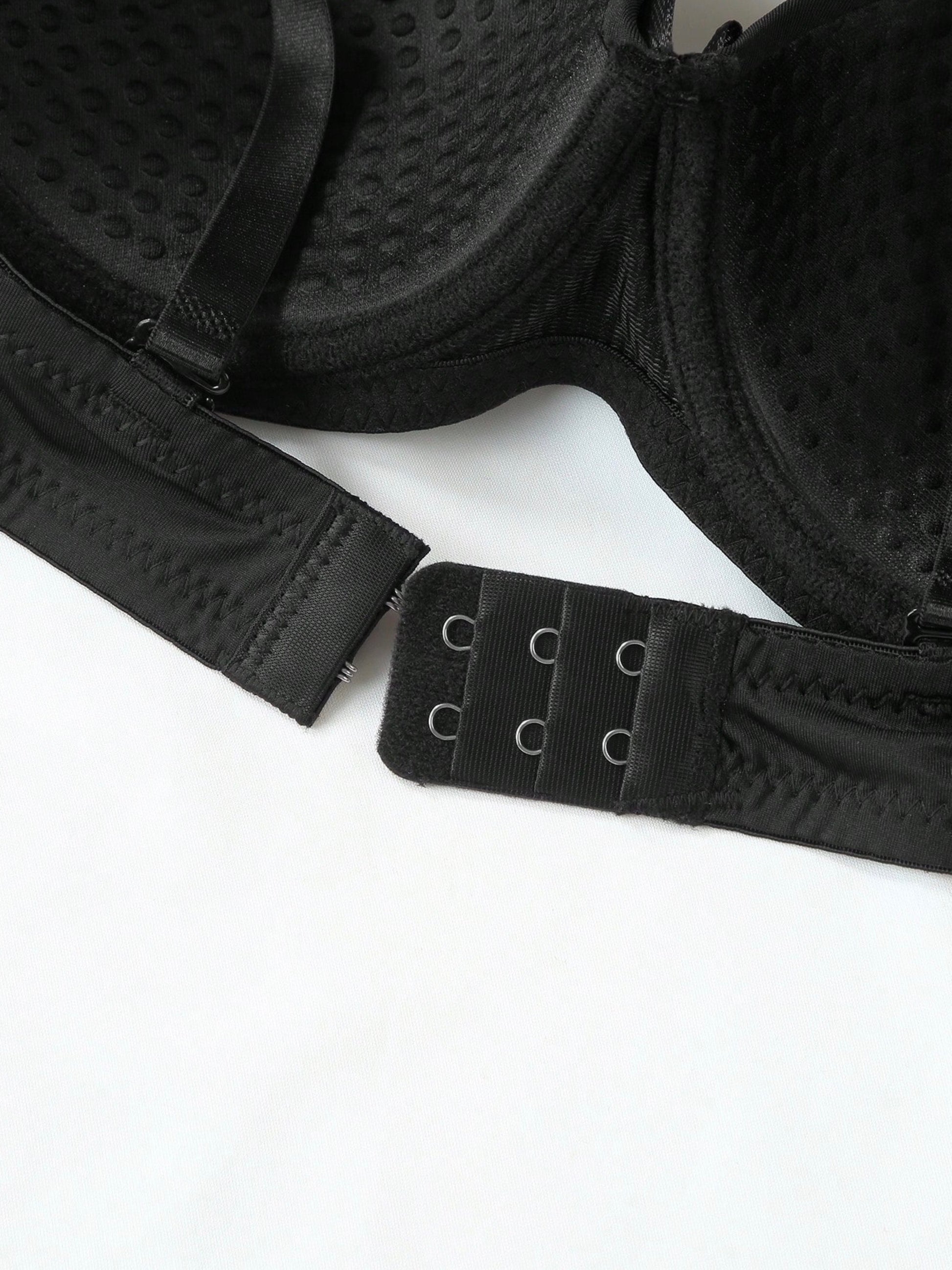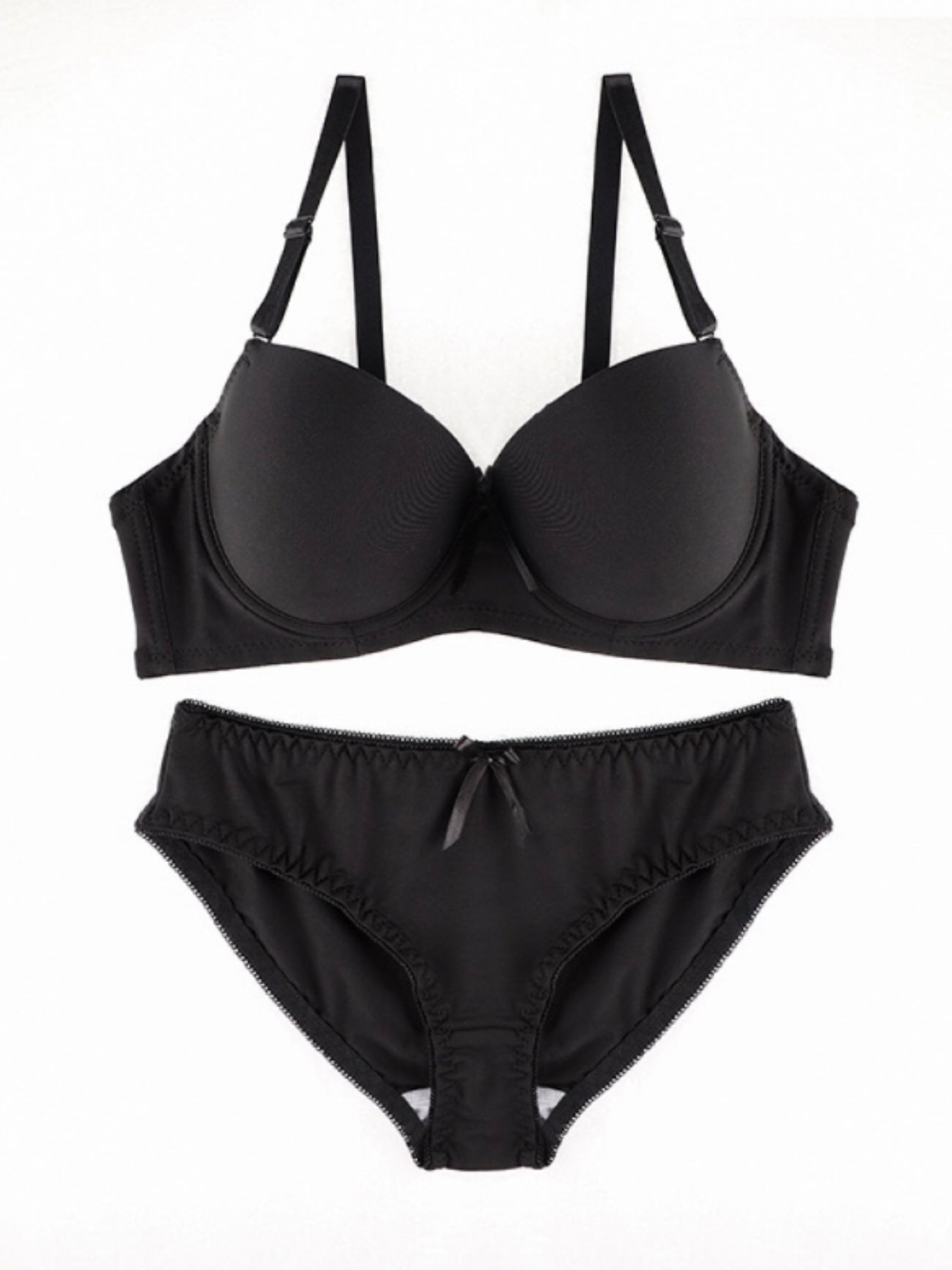 Glossy Steel Ring Lingerie Set in Plain Color 2-Piece