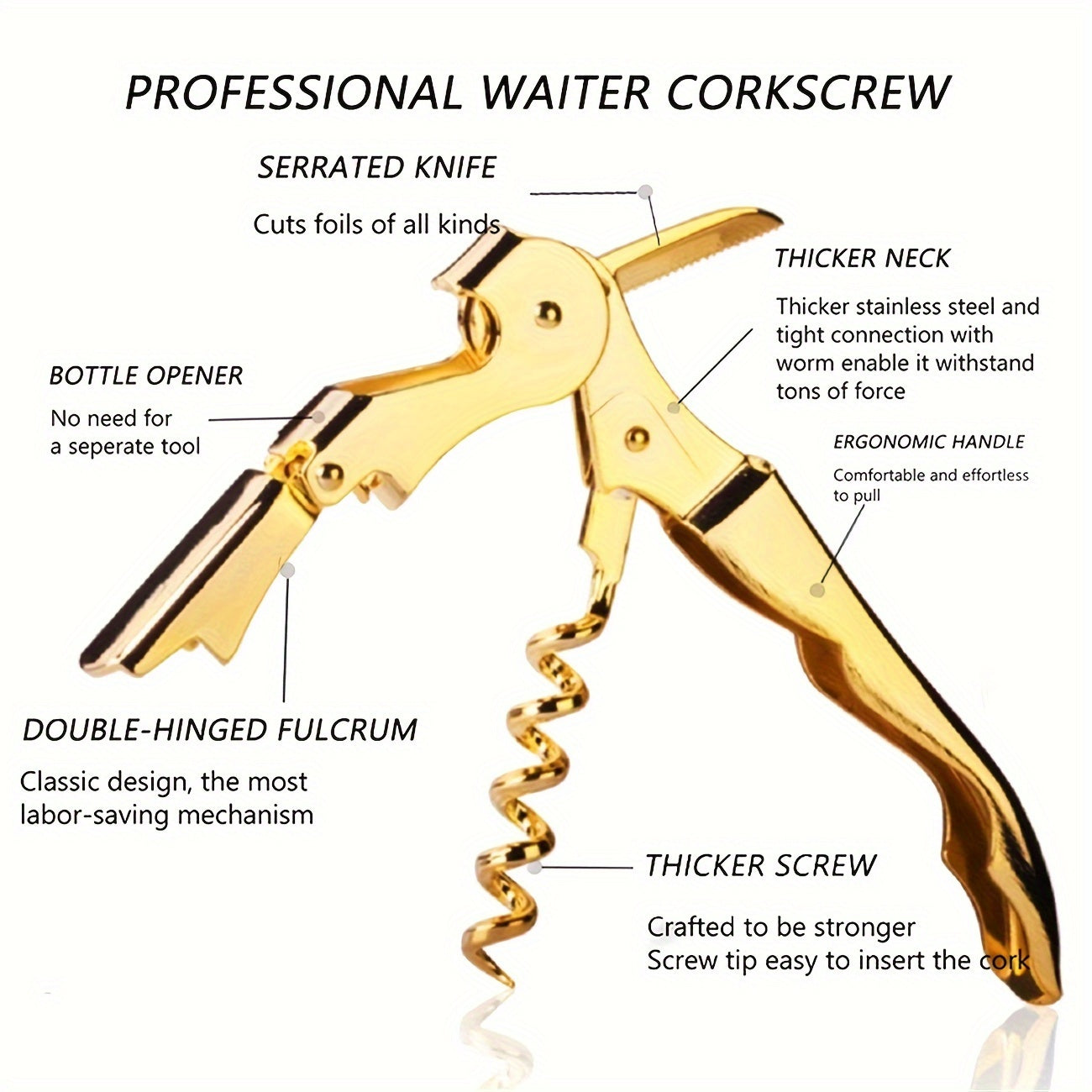 Gold-Toned Wine Opener with Serrated Knife and Double-Hinged Fulcrum