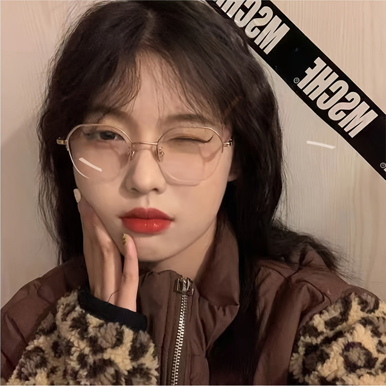 Women's Gold Beige Metal Full Rim Round Blue Light Blocking Glasses