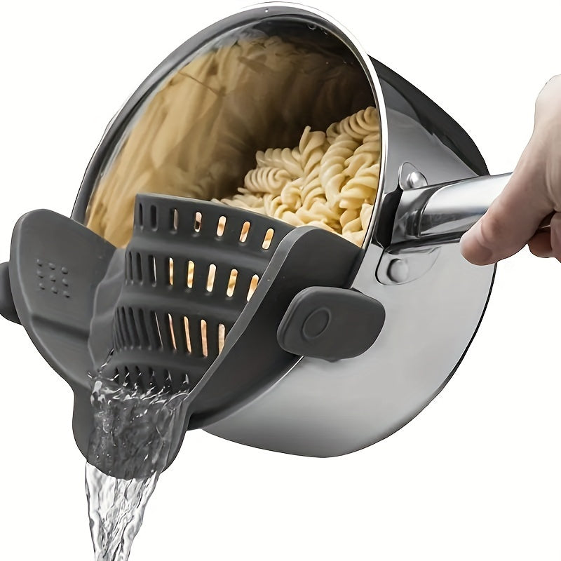 Gray Adjustable Silicone Pot and Pasta Strainer Clip-On Kitchen Colander