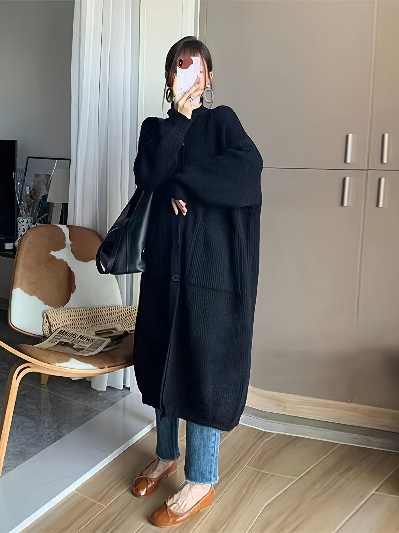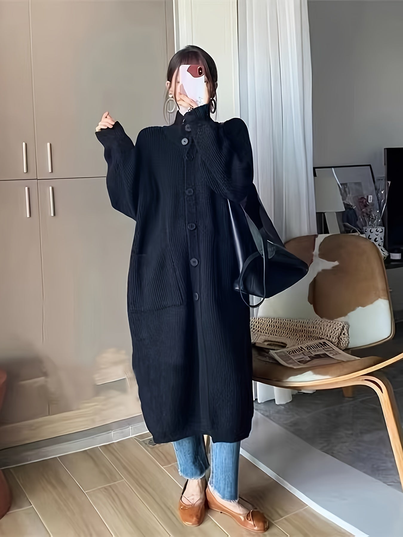 Plus Size Gray Knit Cardigan for Women Casual Fall Winter Long Sleeve Pockets Stand Collar