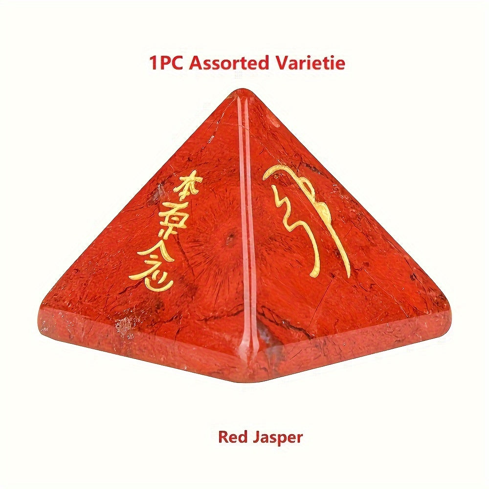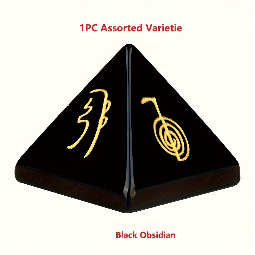 Hand-Carved Reiki Symbol Pyramid Natural Stone with Healing Crystals for Meditation and Gift