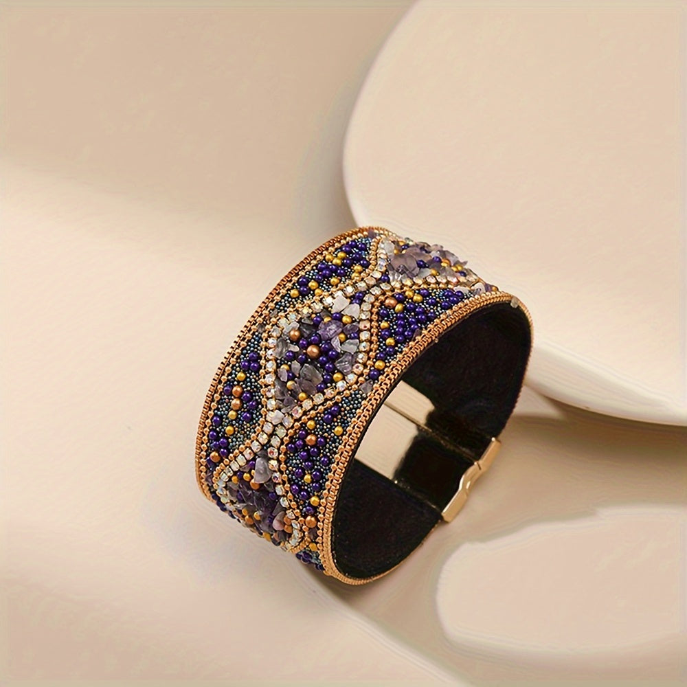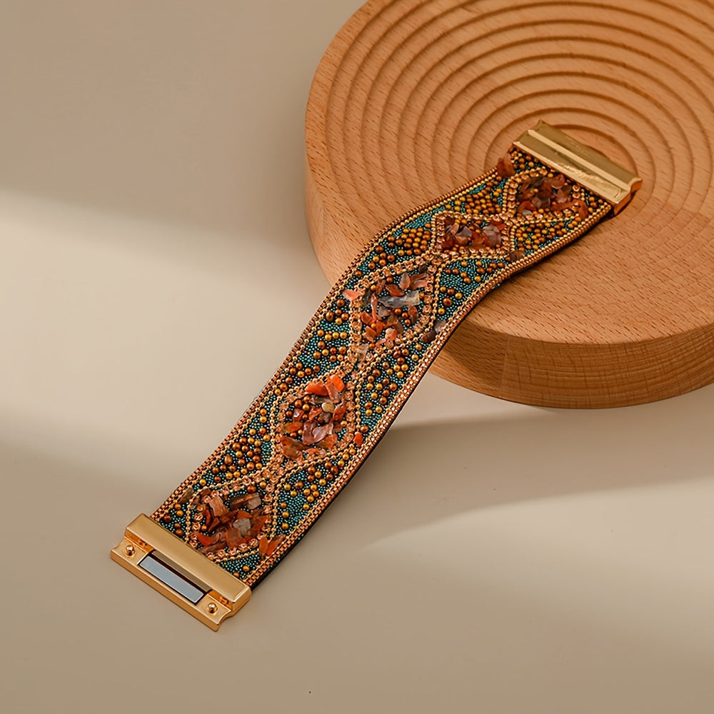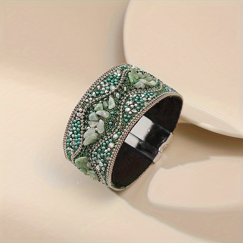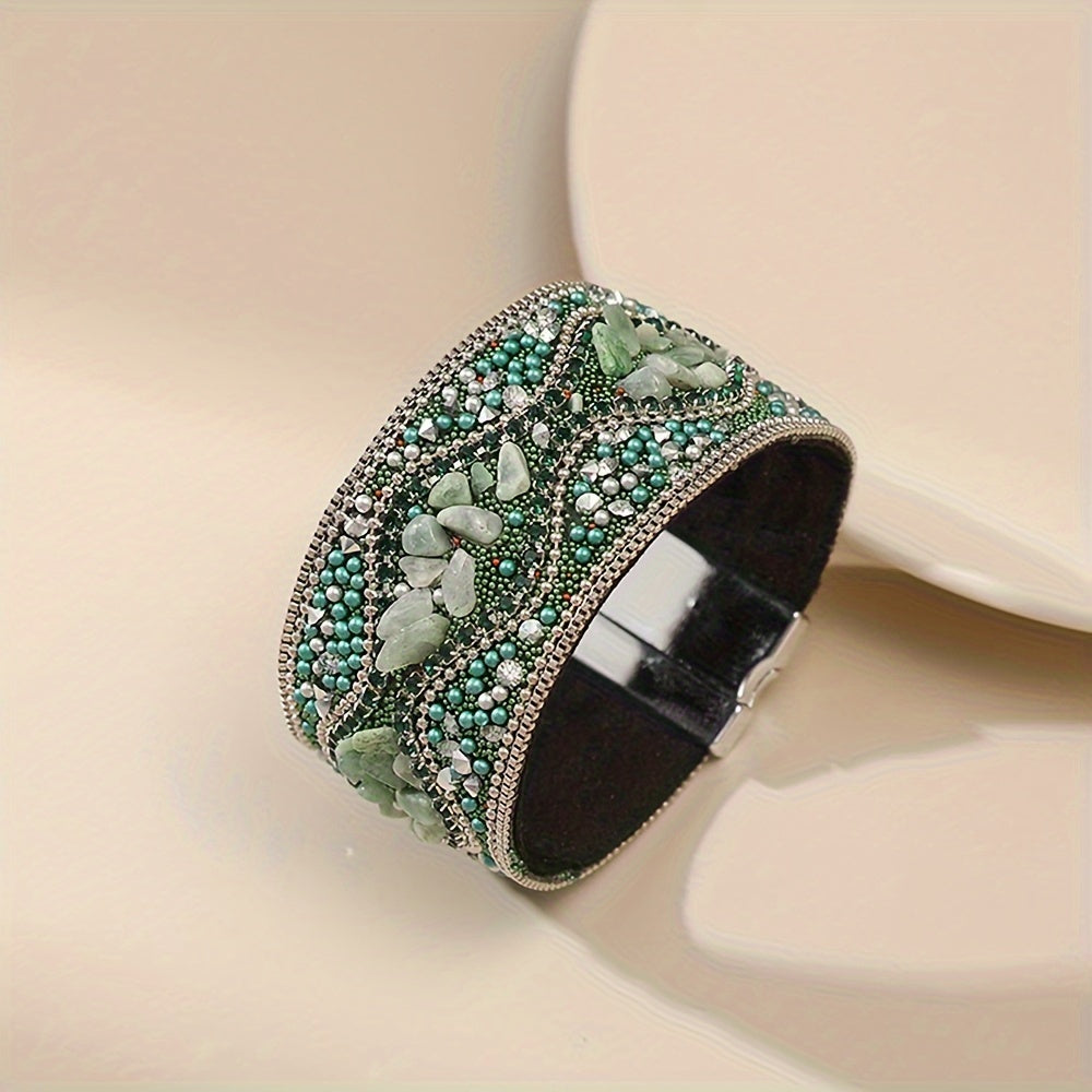 Women's Handmade Natural Stone Bead Faux Leather Bracelet with Magnetic Clasp