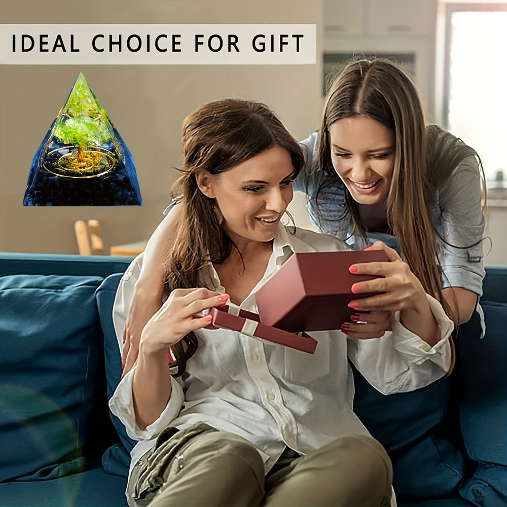 Healing Energy Pyramid with Copper Wire Tree of Life Orgonite Chakra Meditation Tool with Resin Stones