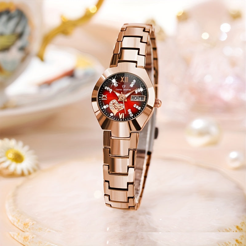 Women’s Heart Quartz Watch with Rhinestones Luminous Dial and Date Function