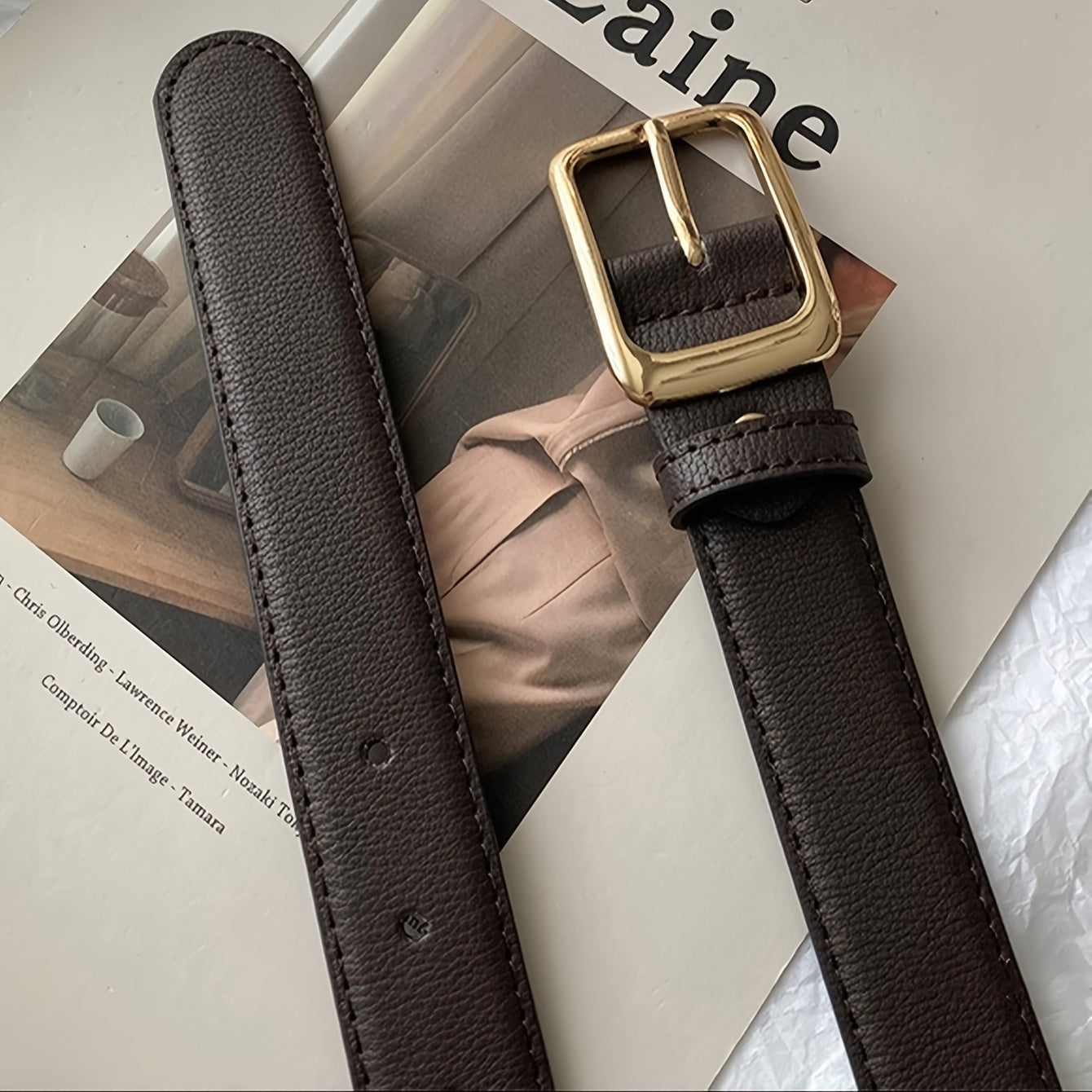 Ladies Dress Jeans Belt with Metal Square Buckle and Adjustable PU Leather Waistband
