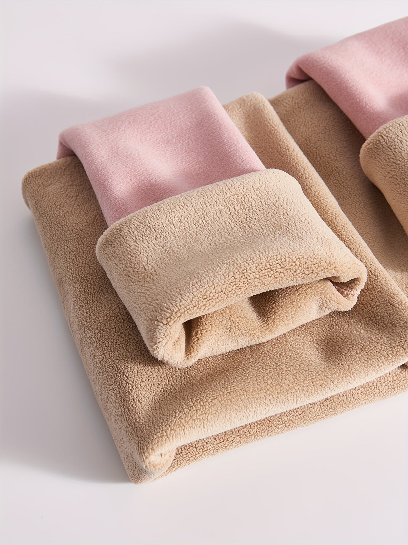 Women's Fleece-Lined High Waist Leggings in Pink and Beige for Autumn Winter Tummy Control Butt Lift Workout