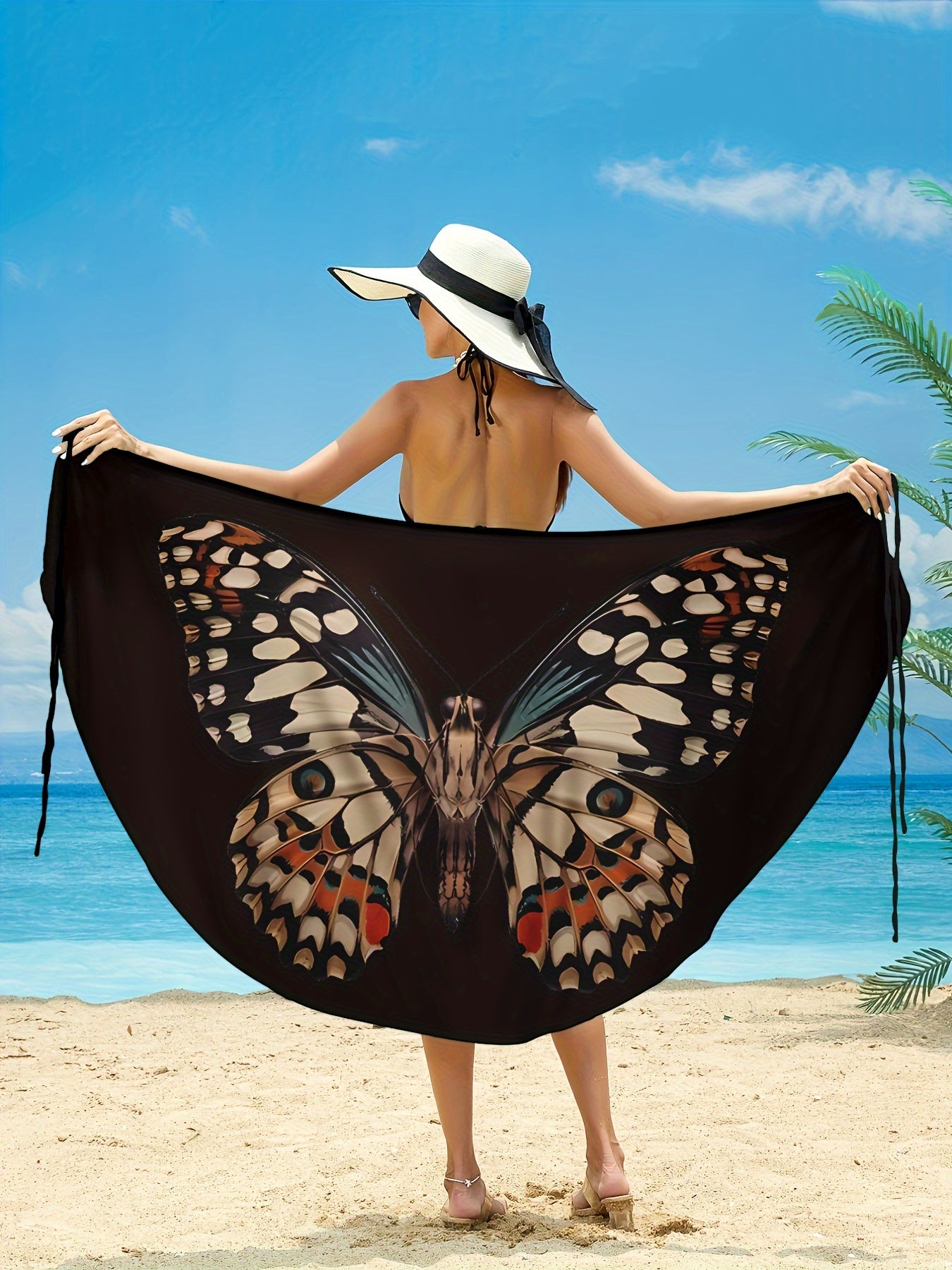 Women's High-Waist Polyester Beach Cover-Up Skirt with Butterfly Print