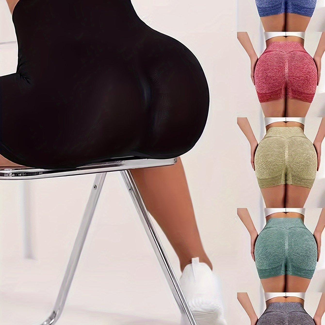 Women's High-Waisted Yoga Shorts Breathable Stretch Quick-Dry Tummy Control Pink Greenish-Gray Dark Gray