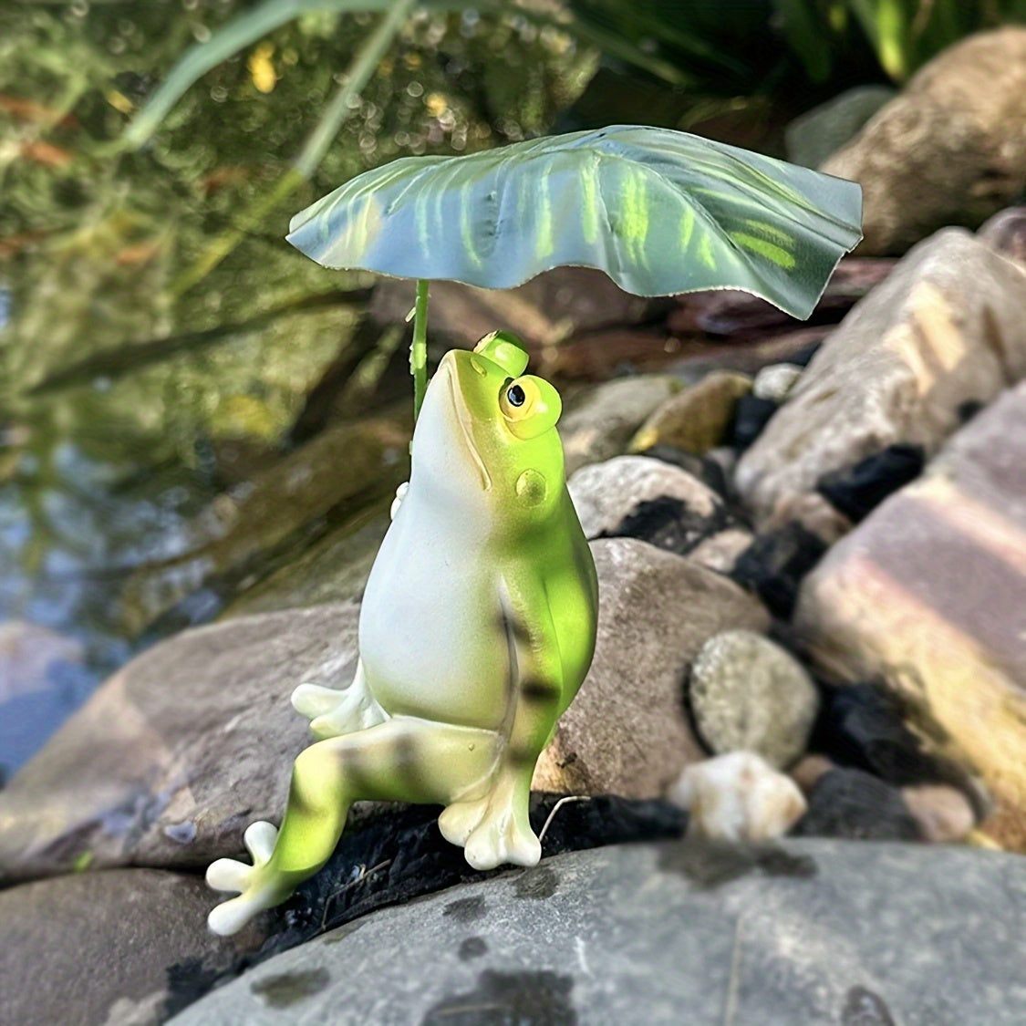 Resin Frog Garden Statue with Leaf Umbrella for Ponds and Home Decor