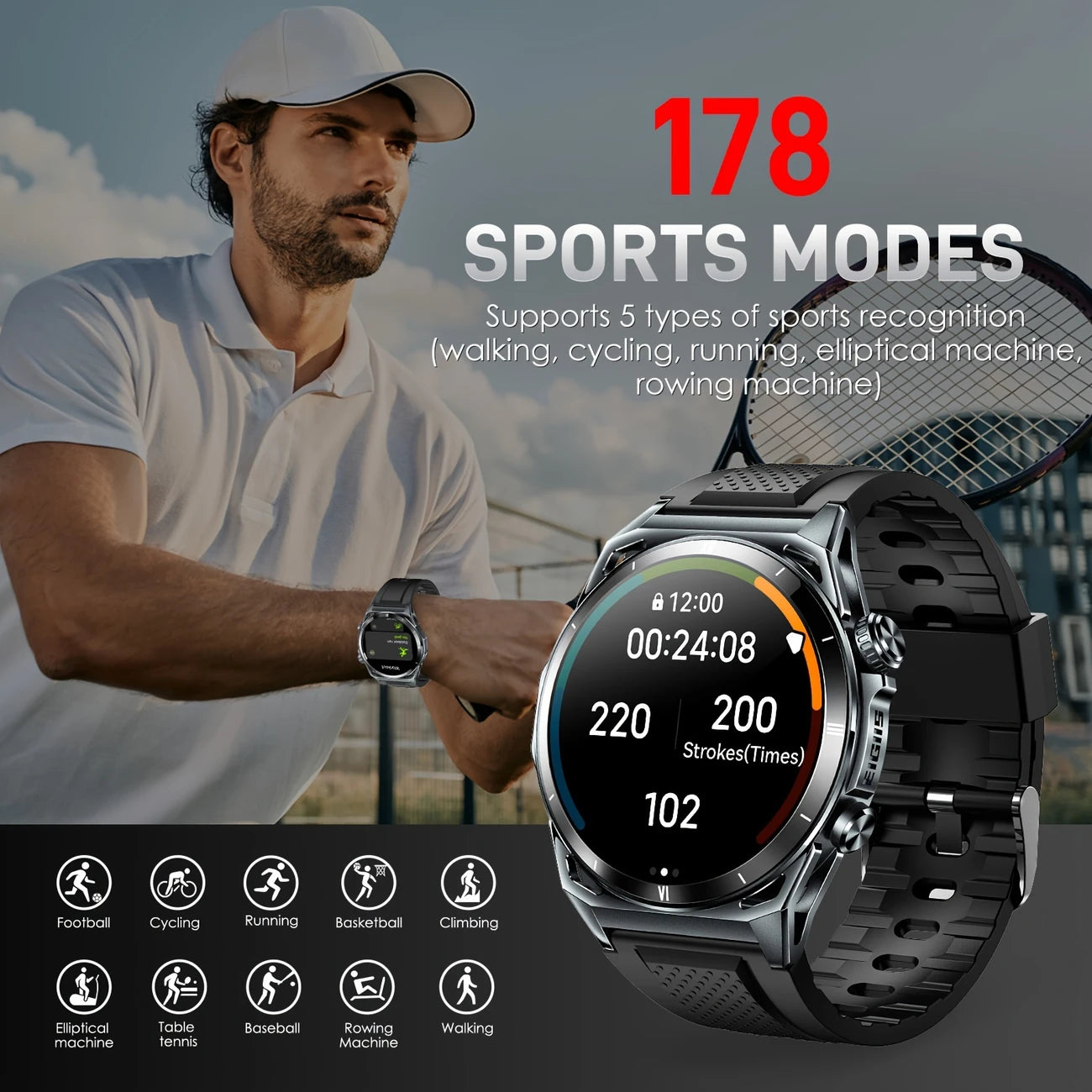 Men's Smartwatch with AMOLED Display 3.63cm Fitness Tracker Call Answering Music Control