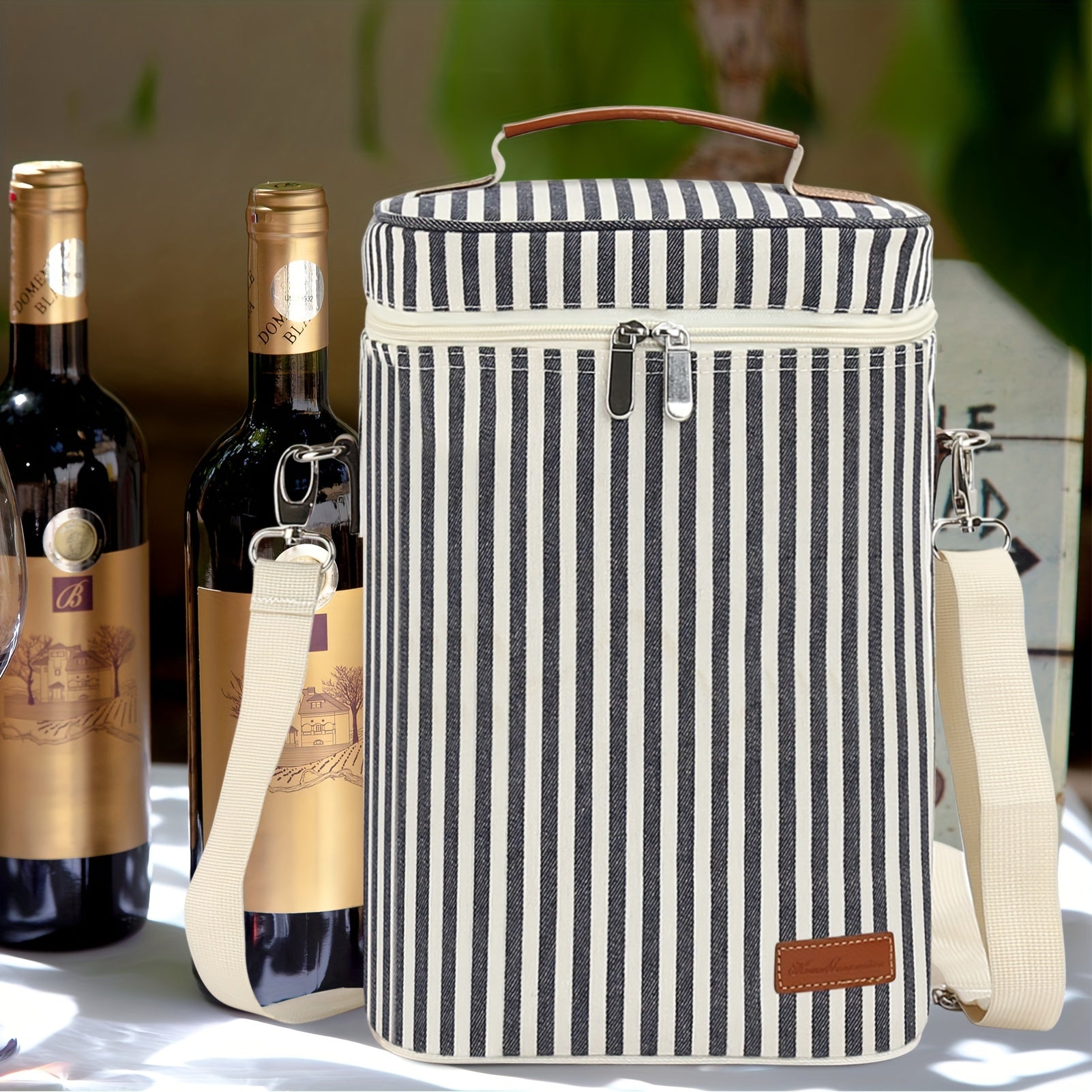 Insulated Wax Canvas Wine Tote Bag Holds 4 Bottles with Wine Opener for Travel Beach Weddings