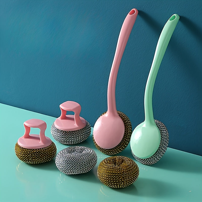 6-Piece Stainless Steel Brush Set with Long and Short Handles for Kitchen Bathroom Cleaning