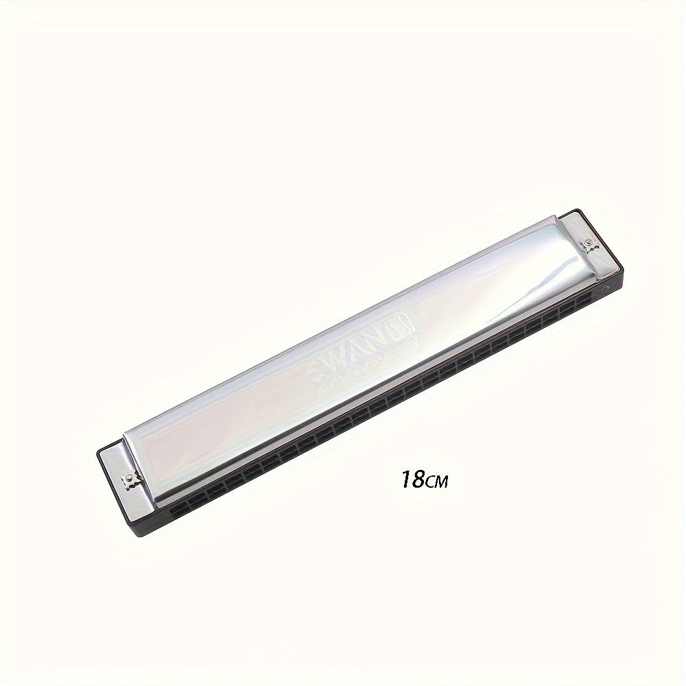 24-Hole Polished Metal Harmonica in D and C Keys with Case and Cloth