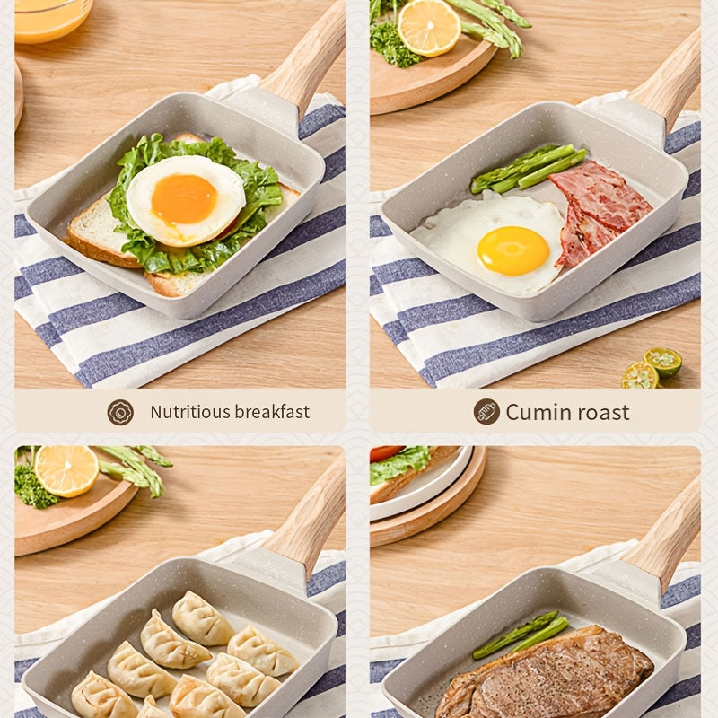Japanese Style Tamagoyaki Pan Set Non-Stick Silicone Omelette Cookware with Wooden Handle