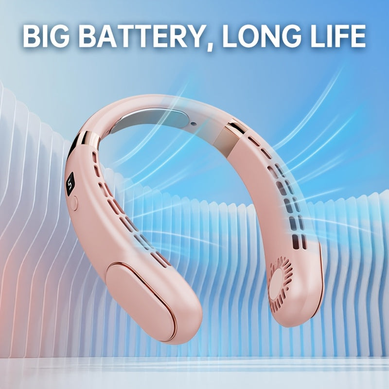 Portable High-Wind Neck Fan with Rechargeable Battery, 5-Speed, Bladeless, Quiet