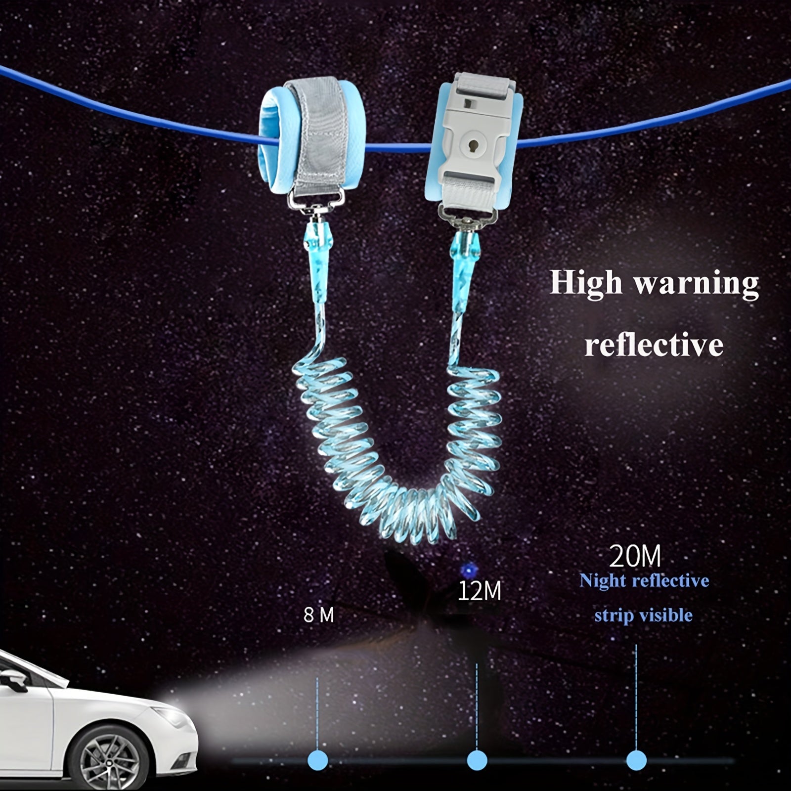 Toddler Child Safety Harness Wrist Link Leash with Key Lock Reflective Rope for Kids 1-10