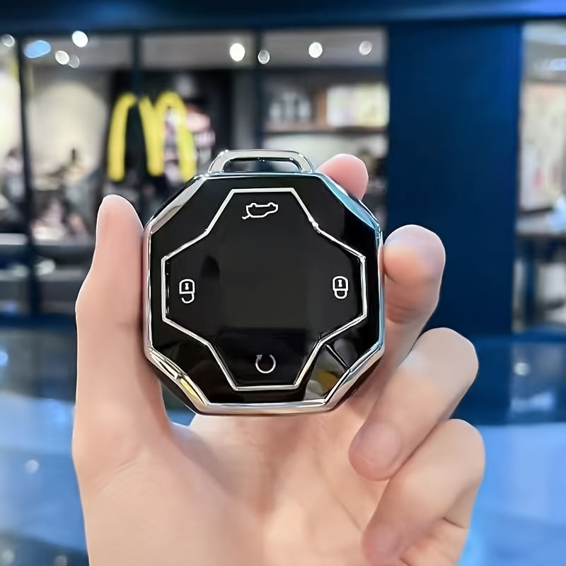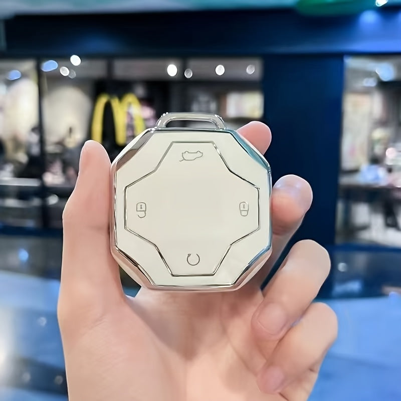 Key Shell for Car Keys TPU Protective Case with Keychain Octagonal Style
