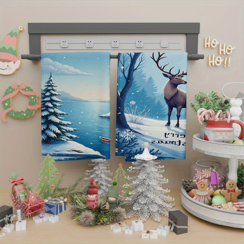 Kitchen Towel Set 2 Pieces Snowflake Winter Christmas Tea Towels Kitchen Decor