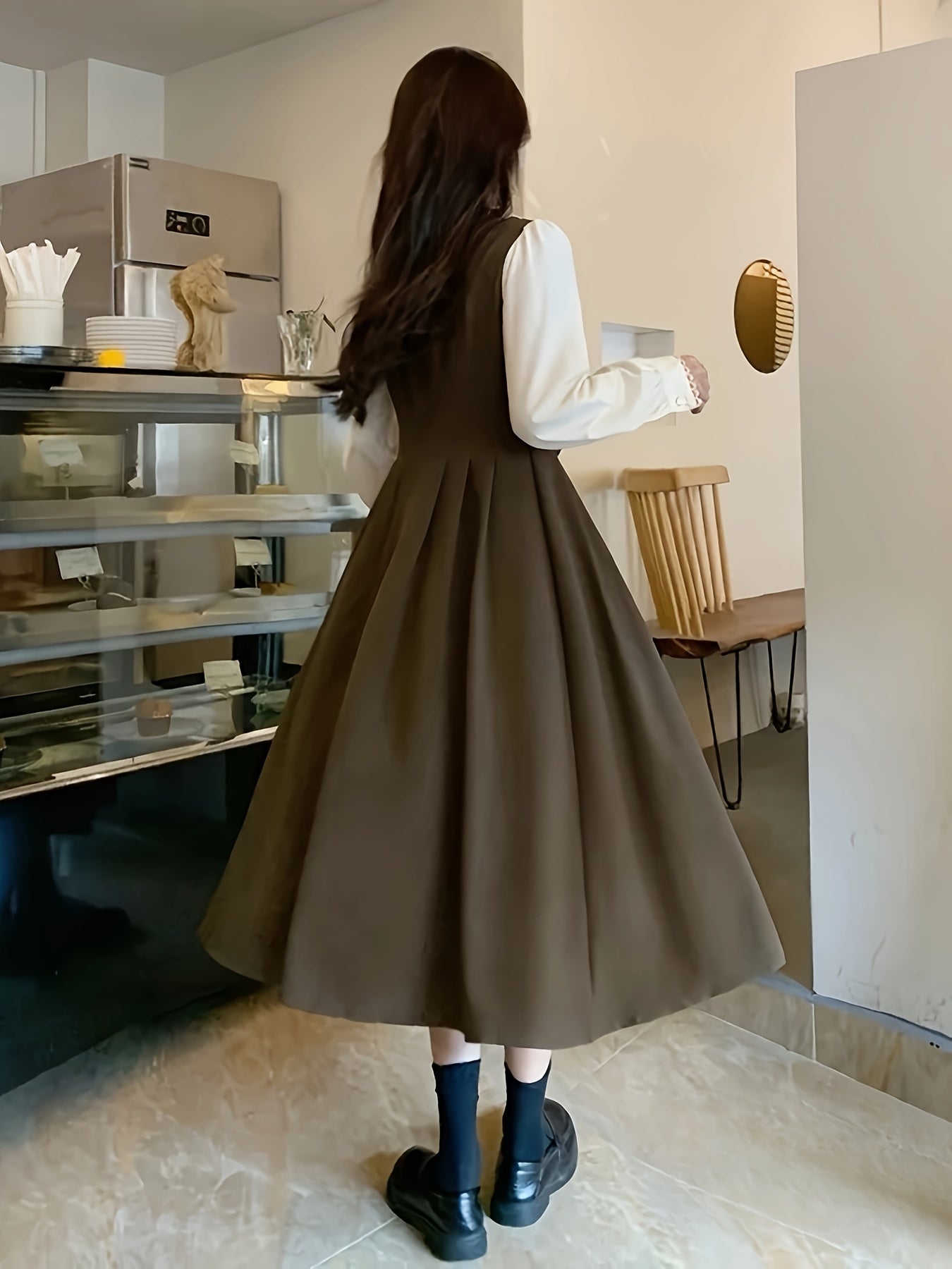 Teen Casual Lace-Trim Collar Shirt Dress in Solid Polyester Blend
