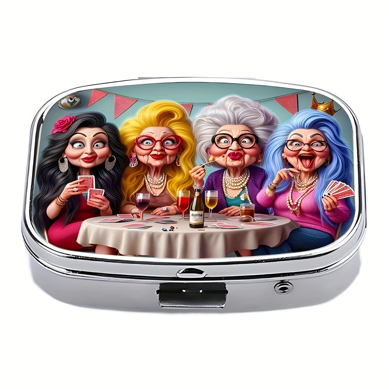 Ladies Metal Pill Box 2-Compartment Portable Medicine Storage