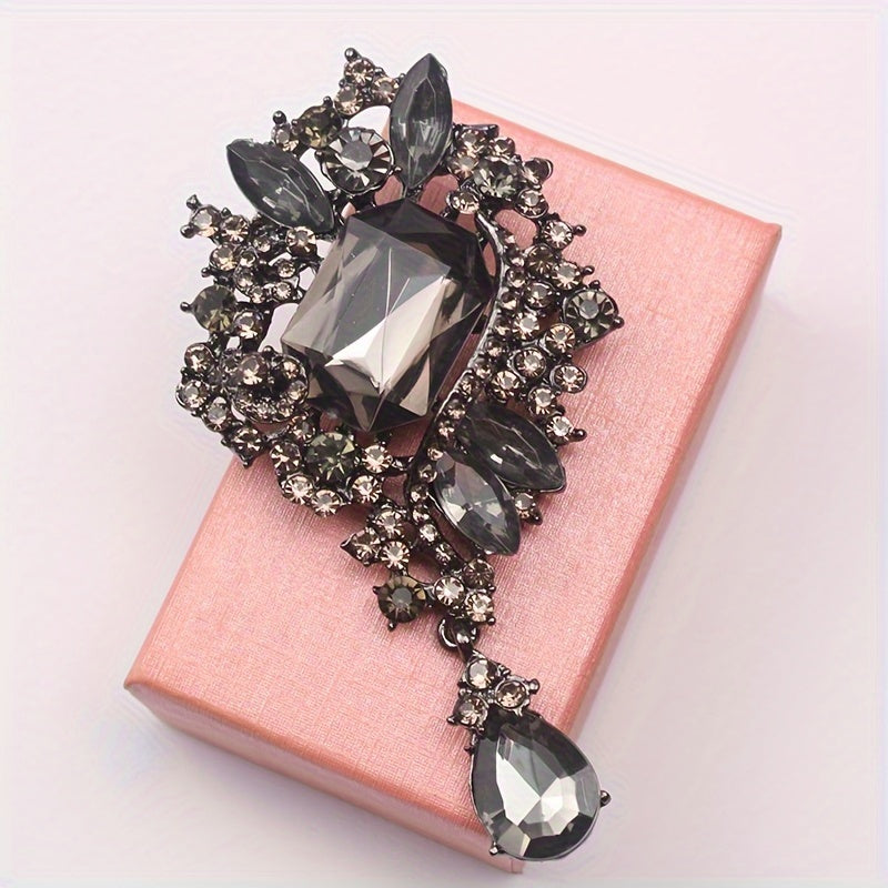 Ladies Waterfall Crystal Brooch with Teardrop Pendant Vintage Style