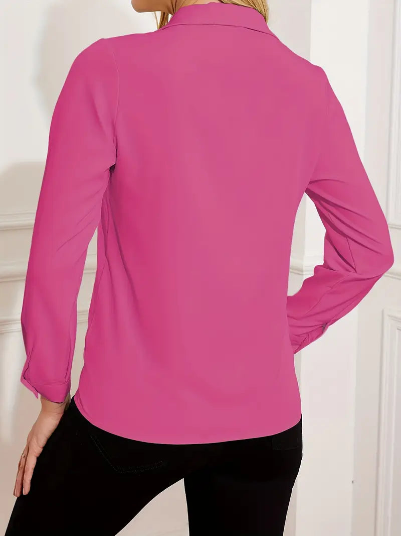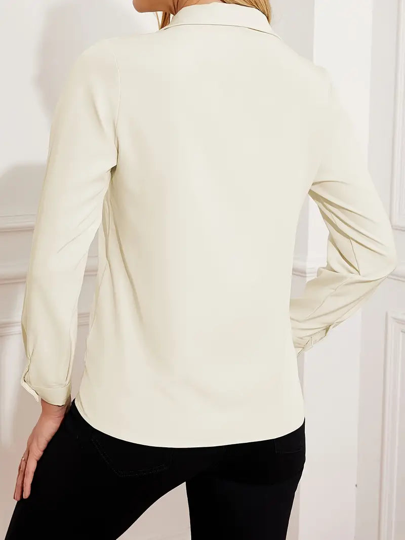 Women's Polyester Blouse with Lapel Collar and Button Detail for Spring Summer