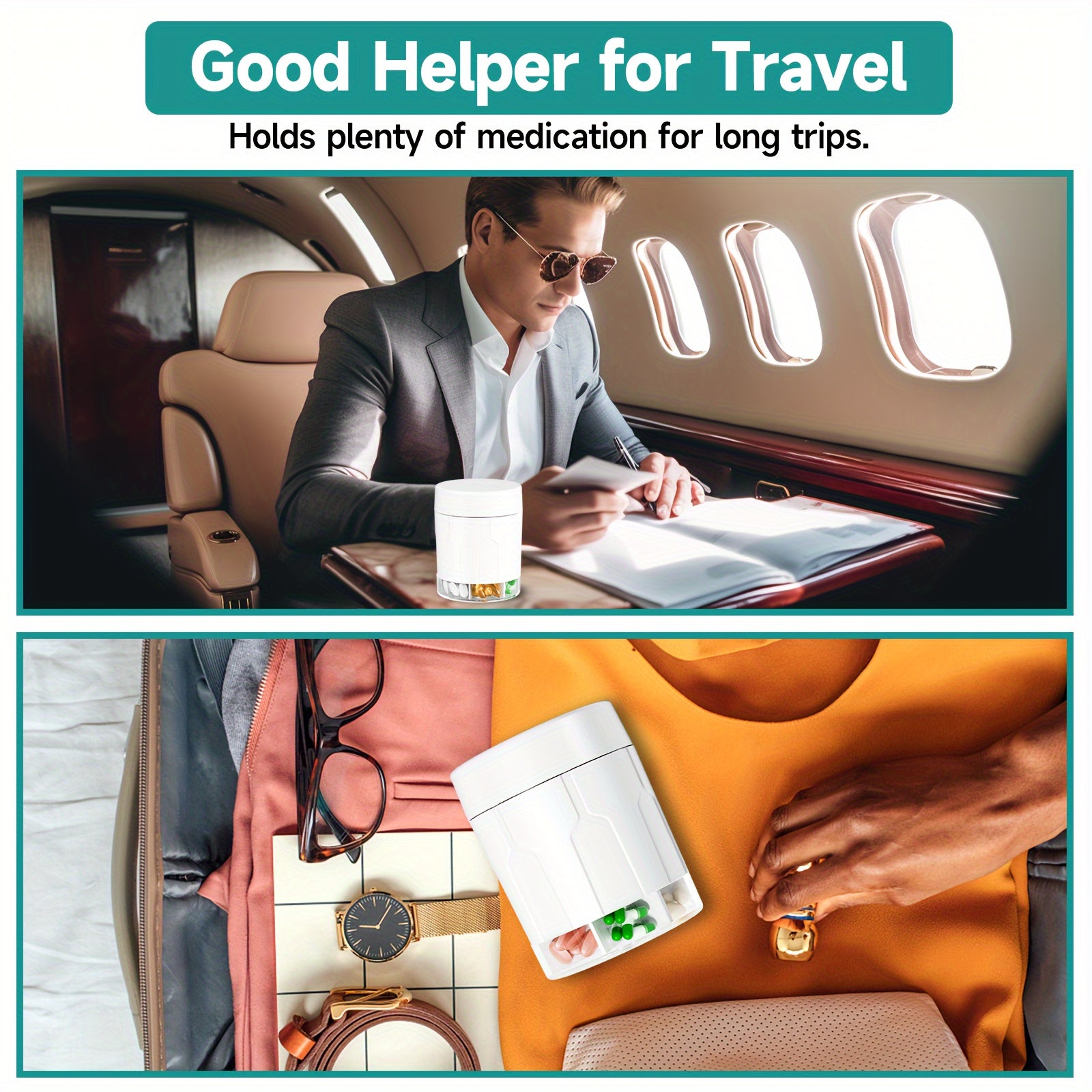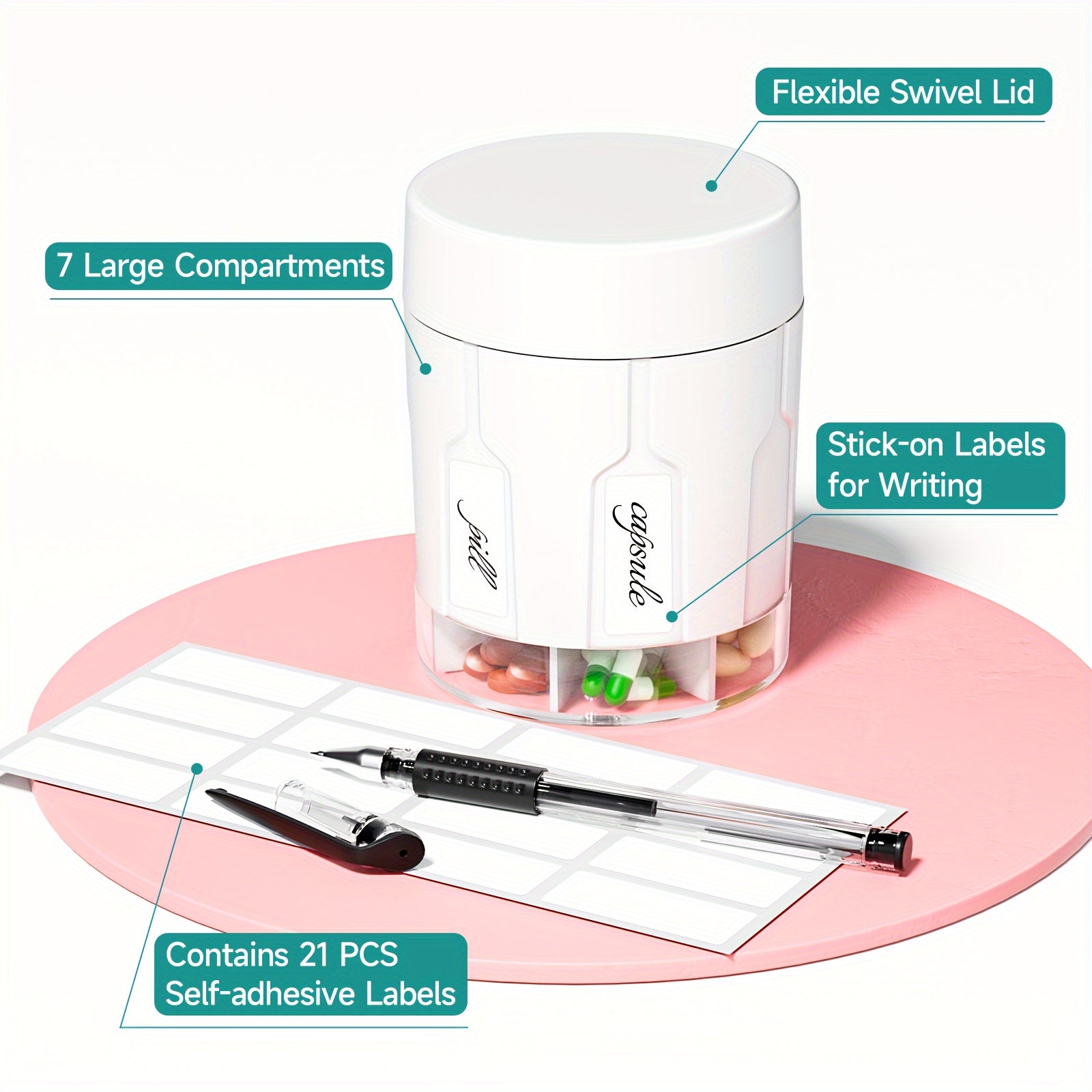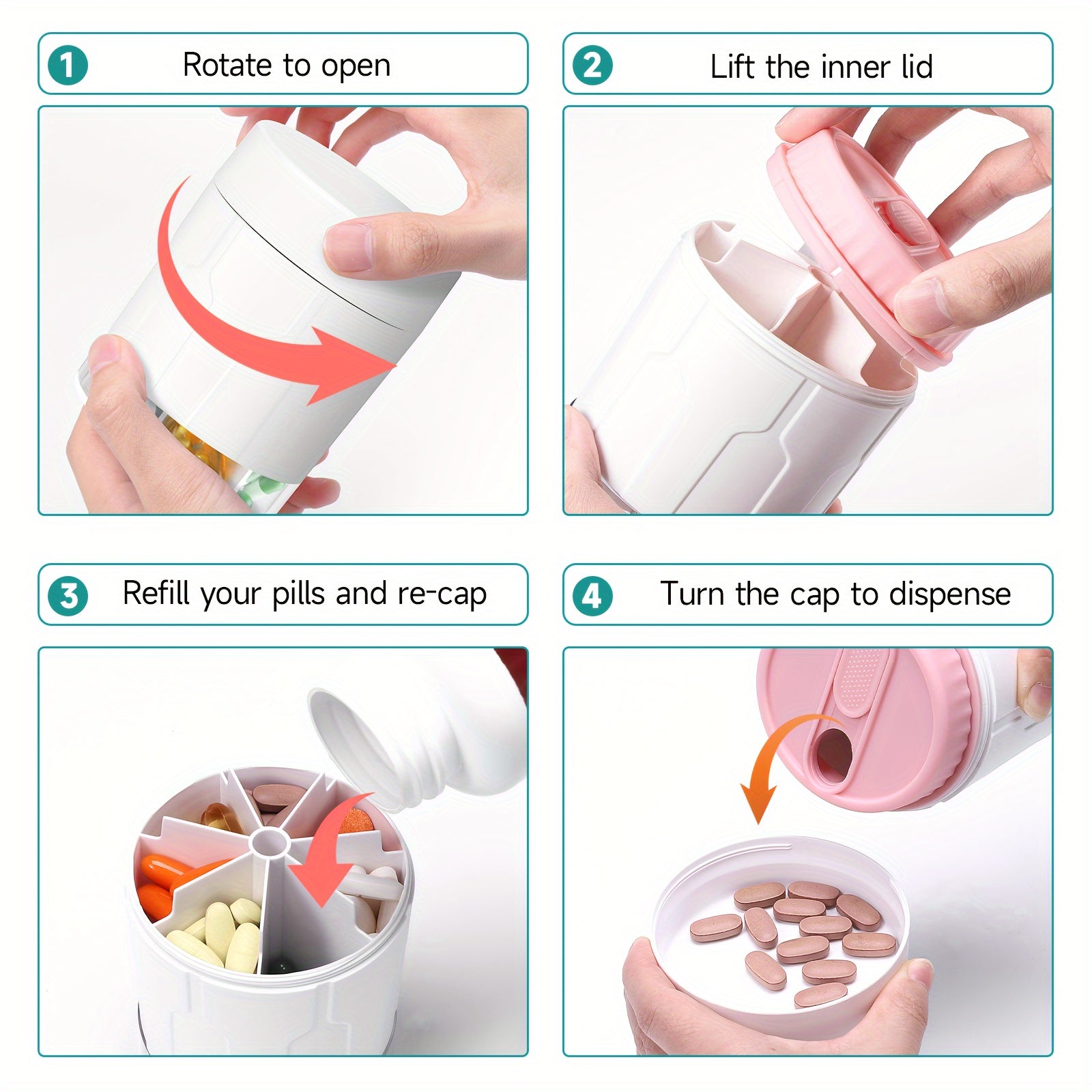 Large Pill Organizer Dispenser for Adults with 7 Compartments Travel Medication Box