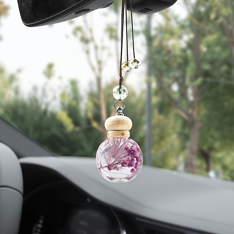 Lavender Diffuser in Glass Bottle with Wooden Cap and Gold Beads for Home and Car Use