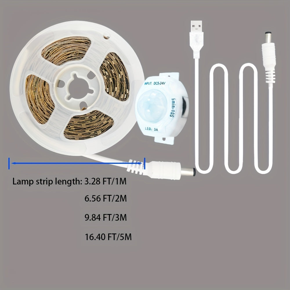 LED Strip Light With Motion Sensor White USB Powered For Stairs Cabinets and Bedrooms