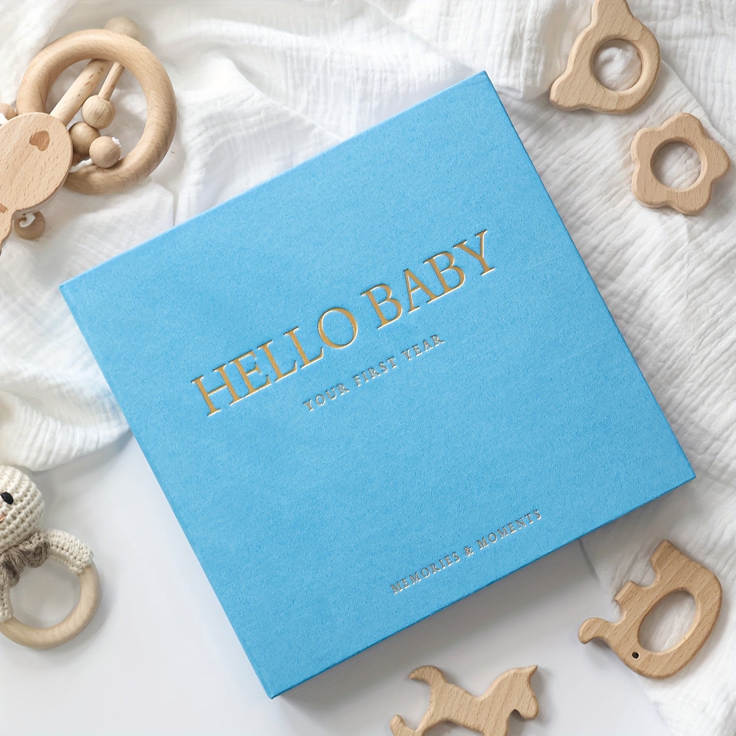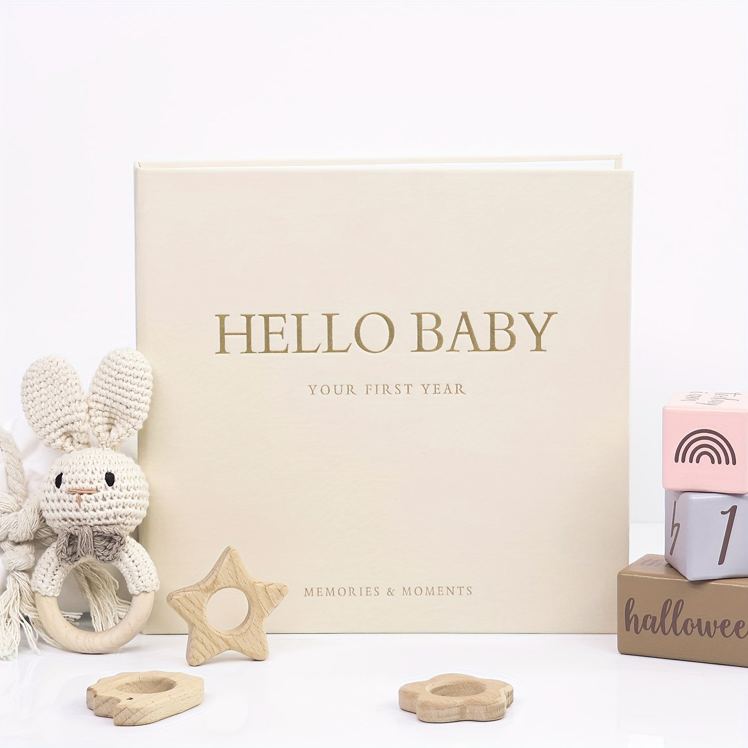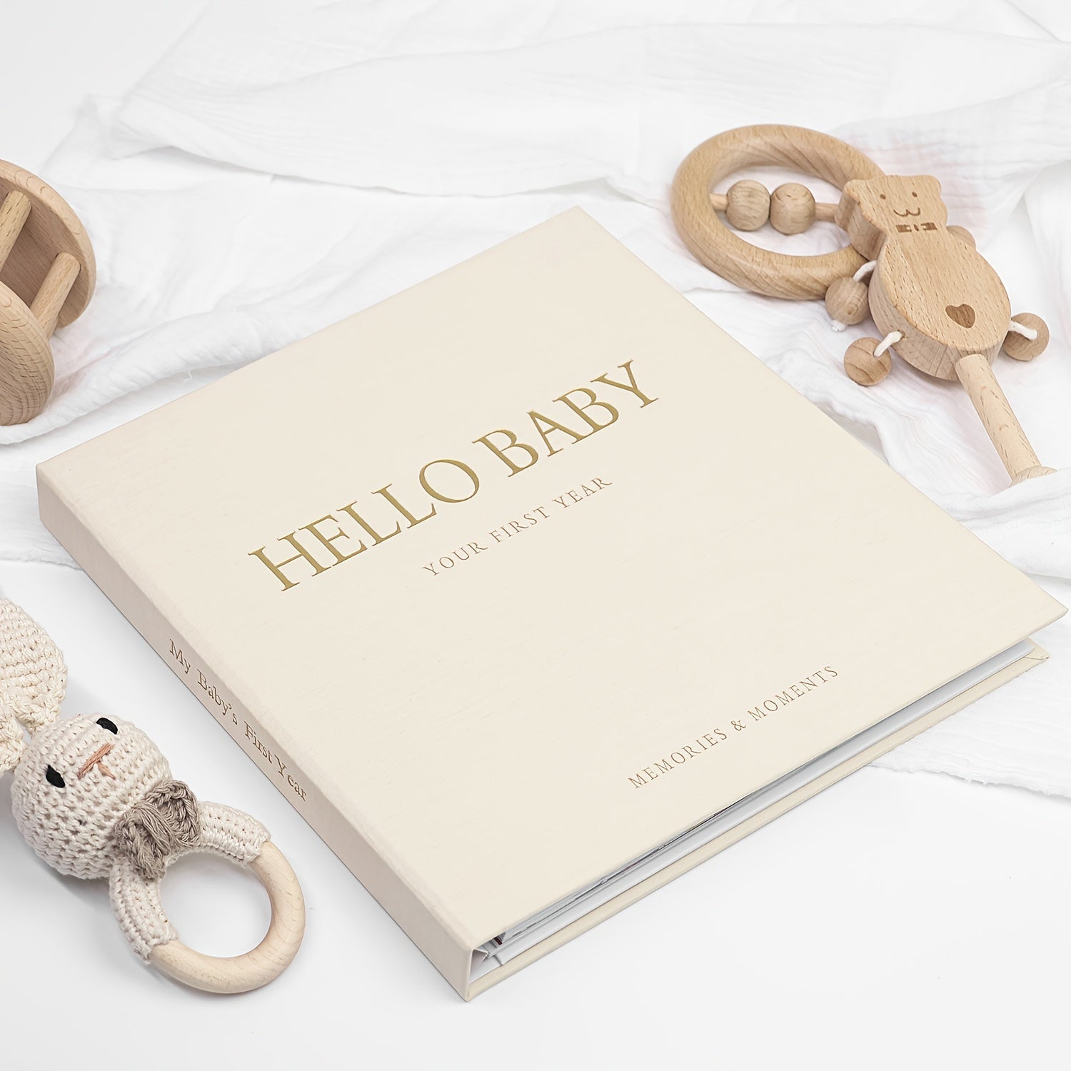 Linen Baby Memory Book Spiral Bound with Milestone Stickers and 86 Pages