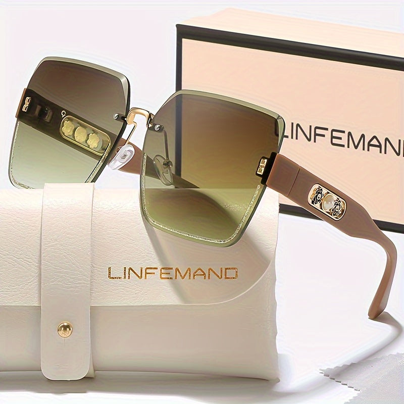 Frameless Gradient Fashion Eyeglasses with Pearl Flower Decoration for Men Women PC Lens Plastic Frame