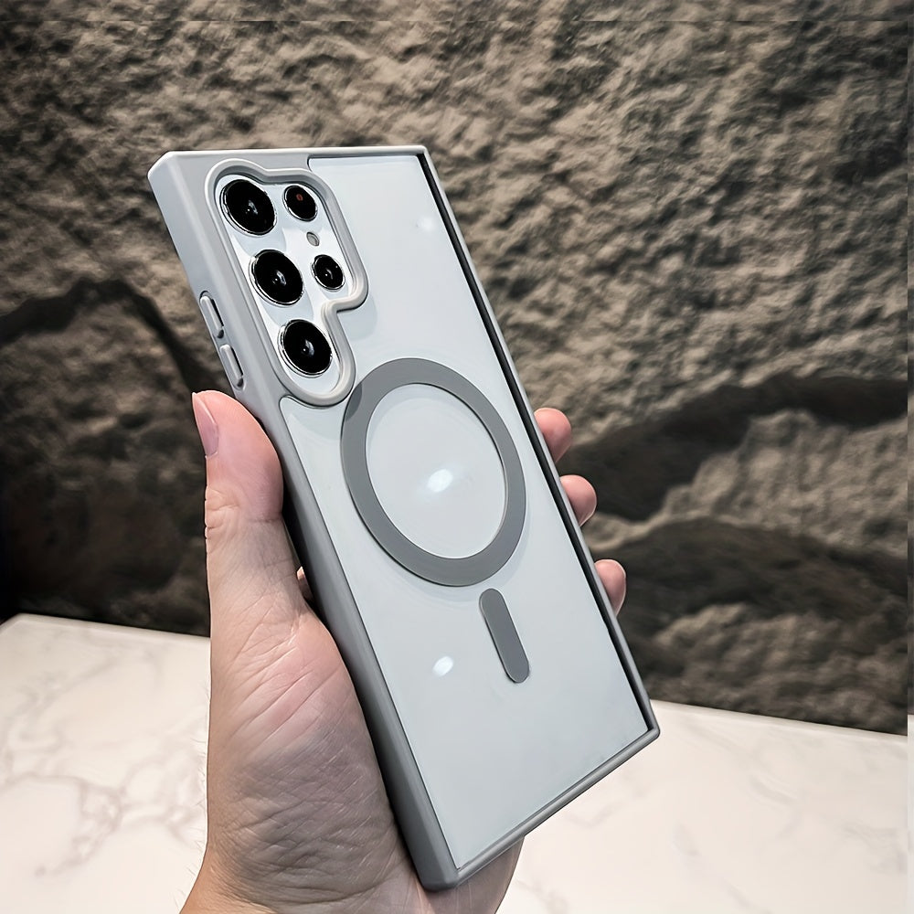 Transparent Magnetic Wireless Charging Shockproof Phone Case for Samsung Galaxy S24 S23 S22 Plus Ultra