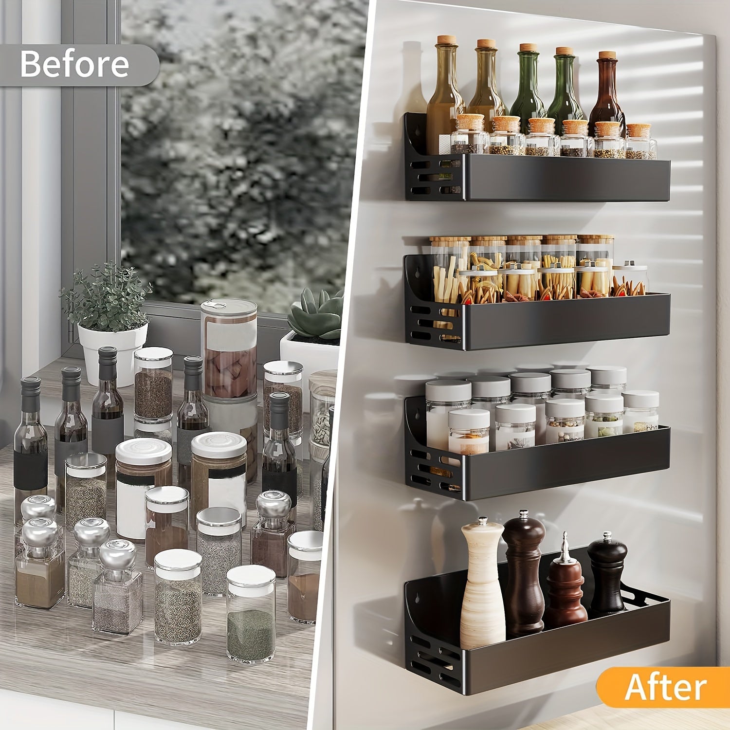 Magnetic Refrigerator Shelf Set of 1 2 or 4 Non-Perforated Metal Wall Mount Storage