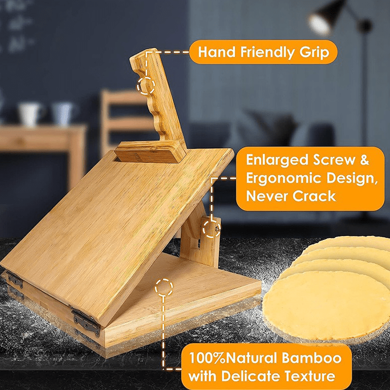 Manual Bamboo Tortilla Press and Rolling Pin for Tacos and Pancakes