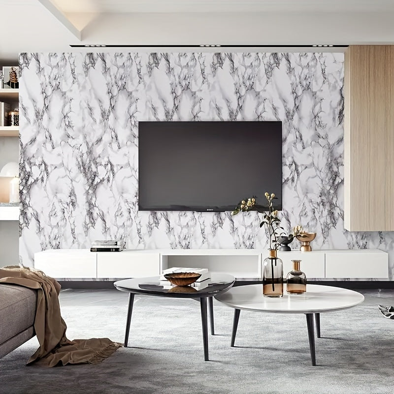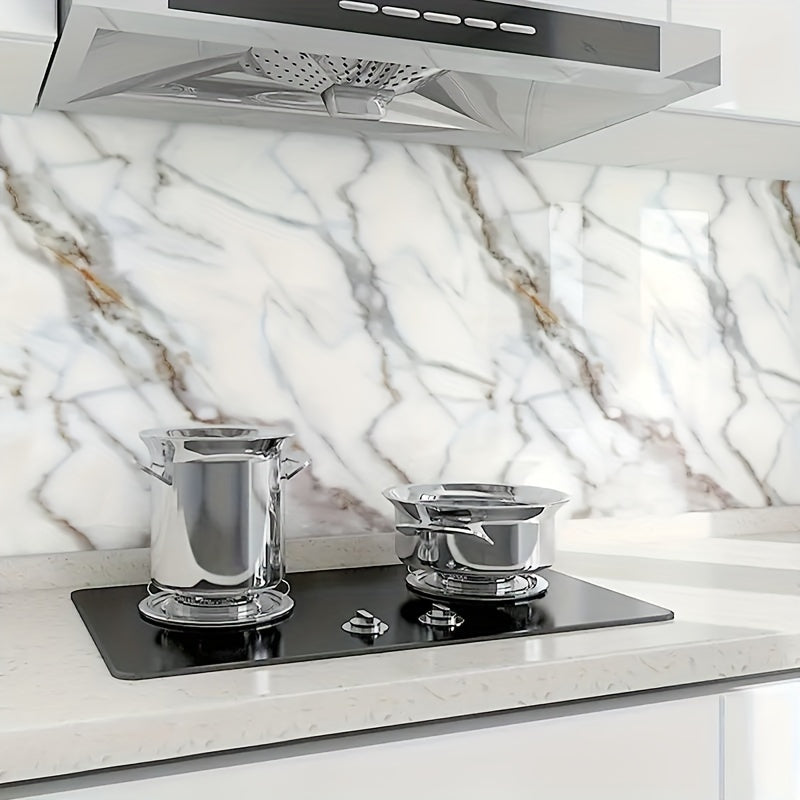 Marble Texture Self-Adhesive Wallpaper Waterproof Oil Heat Resistant Vinyl for Kitchen Bathroom Room Renovation
