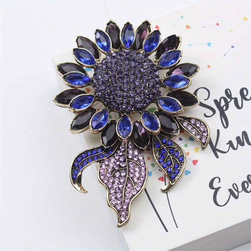 Luxury Sunflower Brooch for Women Rhinestones Enamel Autumn Winter Coat Pin