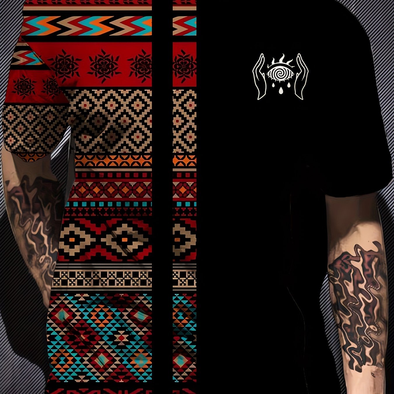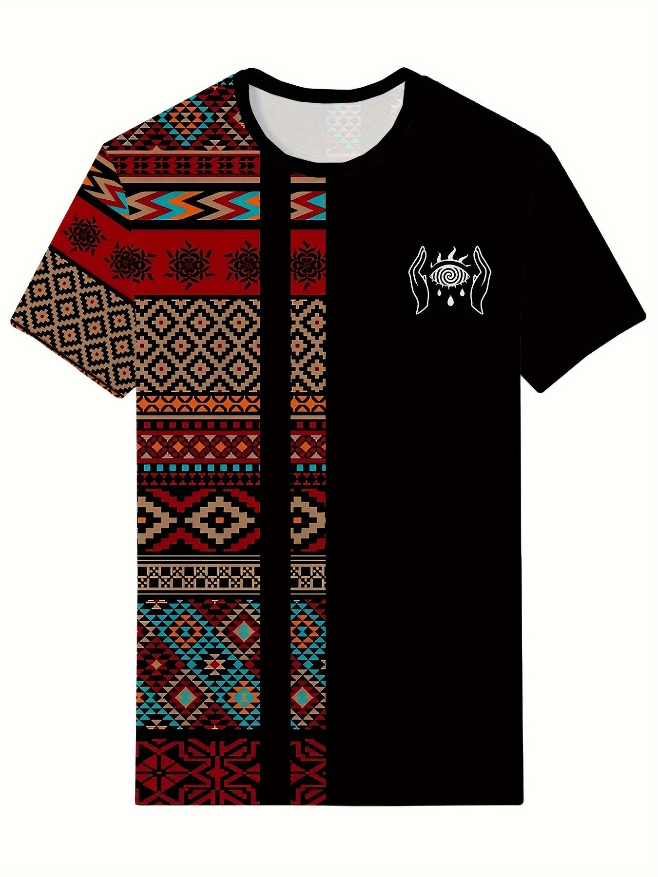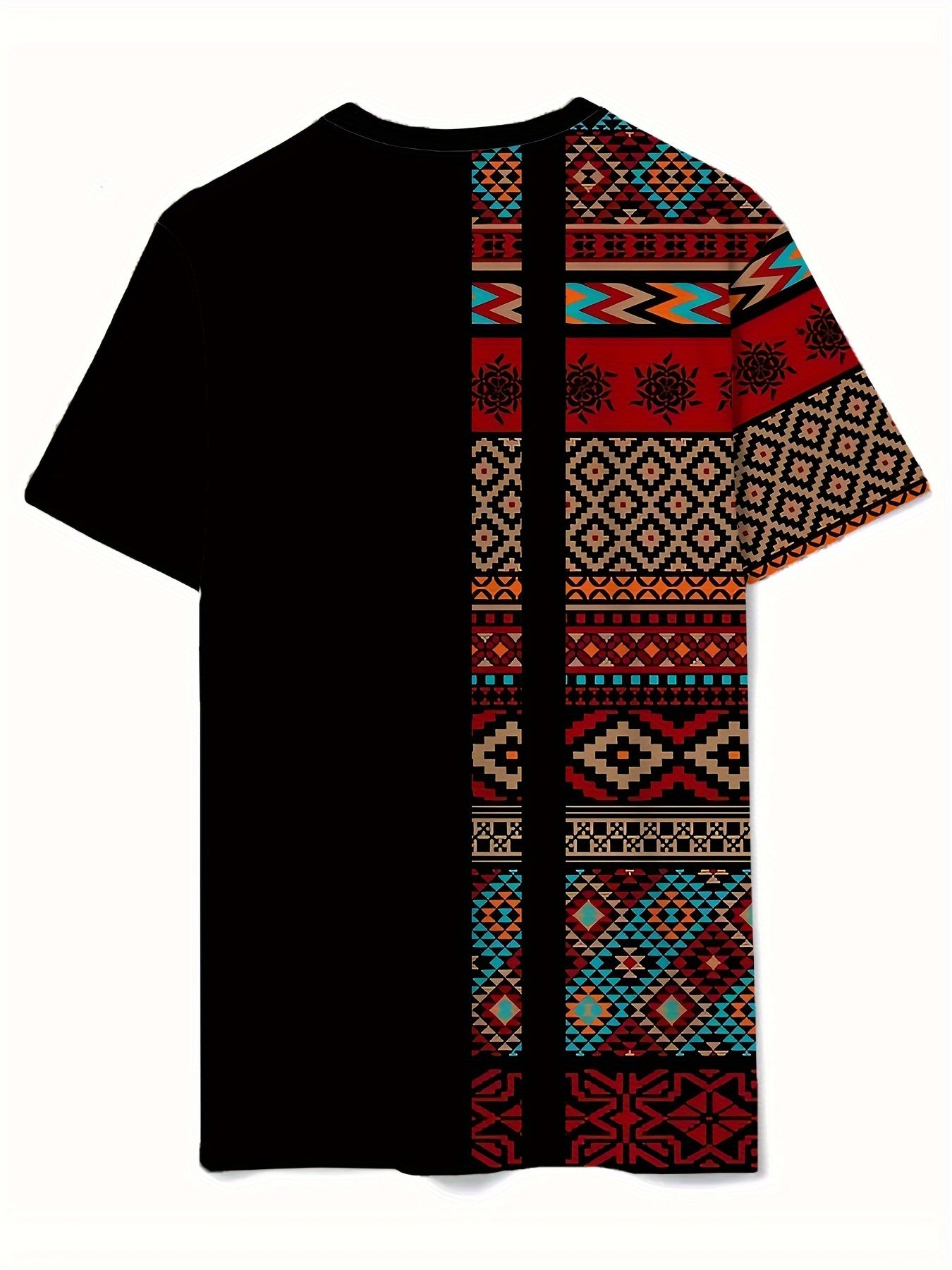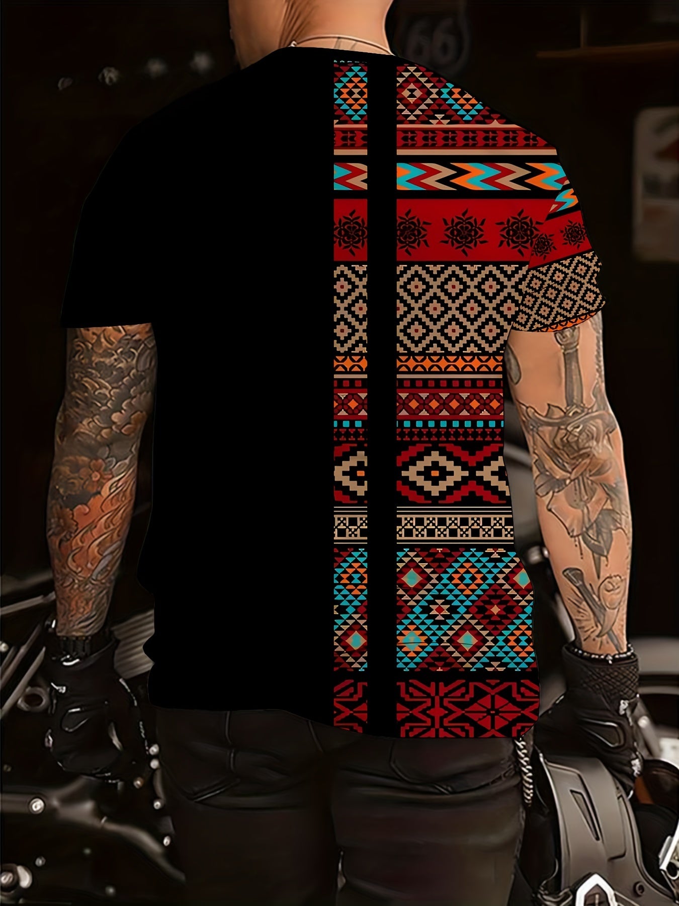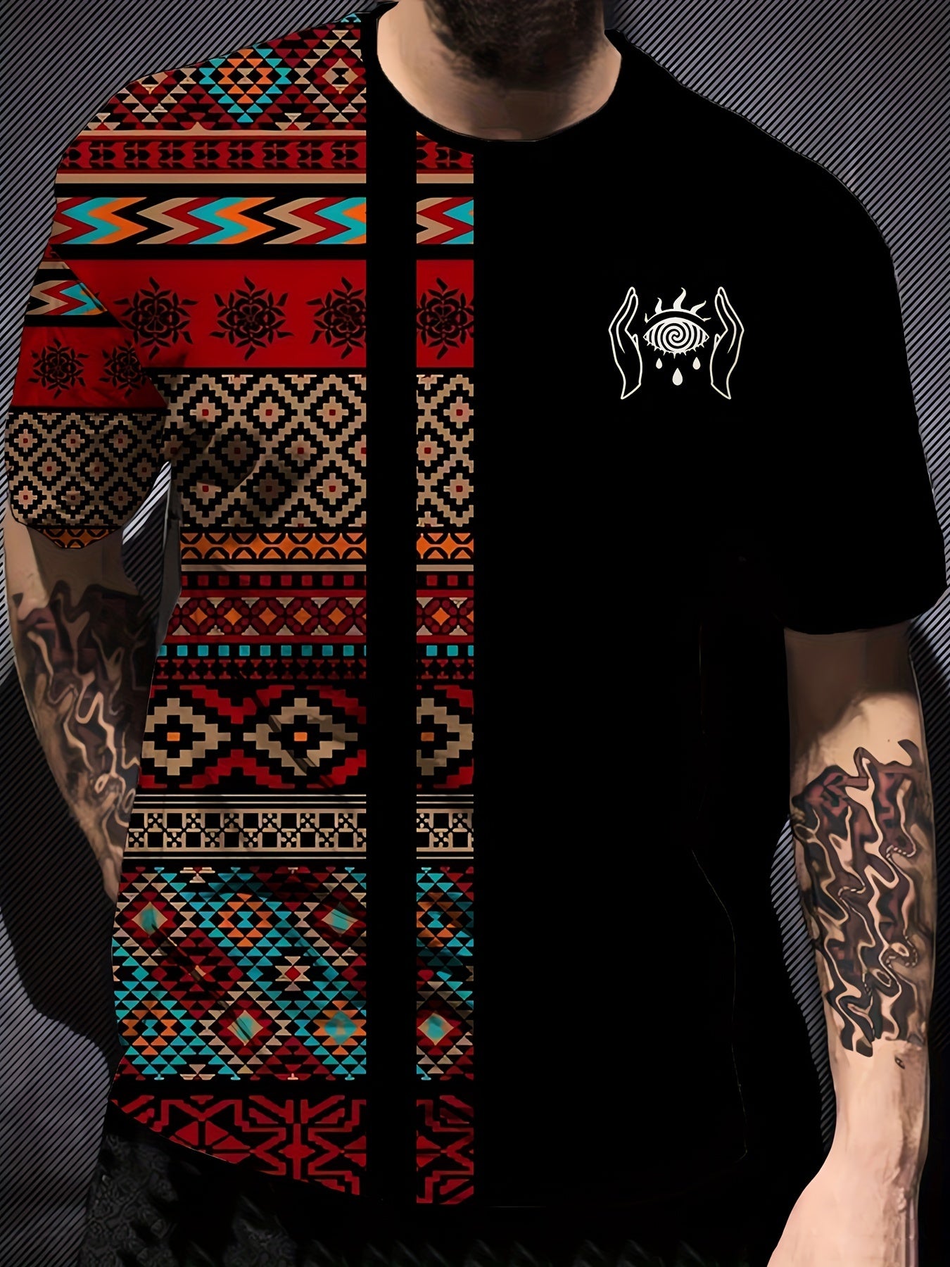 Men's Athletic 3D Print Color Block T-Shirt Breathable Polyester Casual Gym