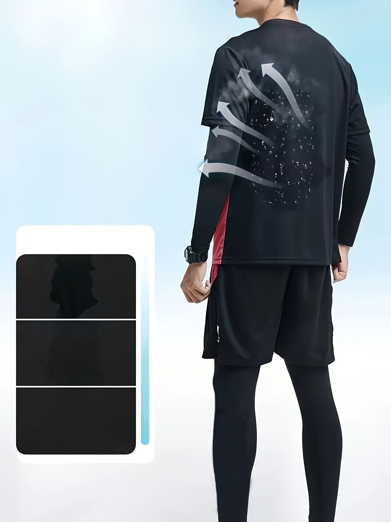 Men's Athletic Set Long Sleeve Tee Shorts Compression Pants Leggings Gradient Colors Breathable High-Elasticity Sports Training