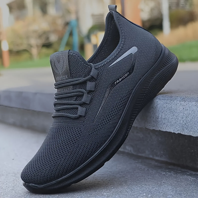 Men's Black Athletic Sneakers with White Accents Breathable Mesh Low Top Casual Gym