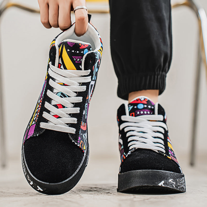 Men's High-Top Fabric Casual Sneakers Slip-Resistant Plaid Lace Shoes