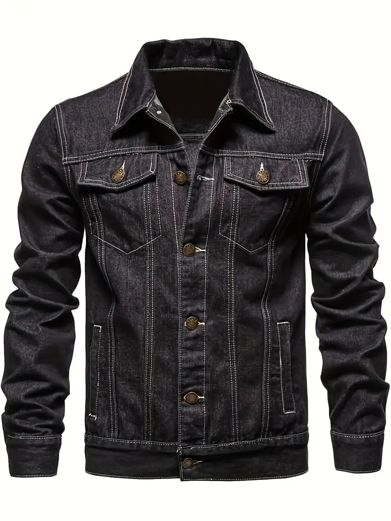 Men's Denim Jacket Casual Street Style Woven Non-Stretch Long Sleeve with Pockets