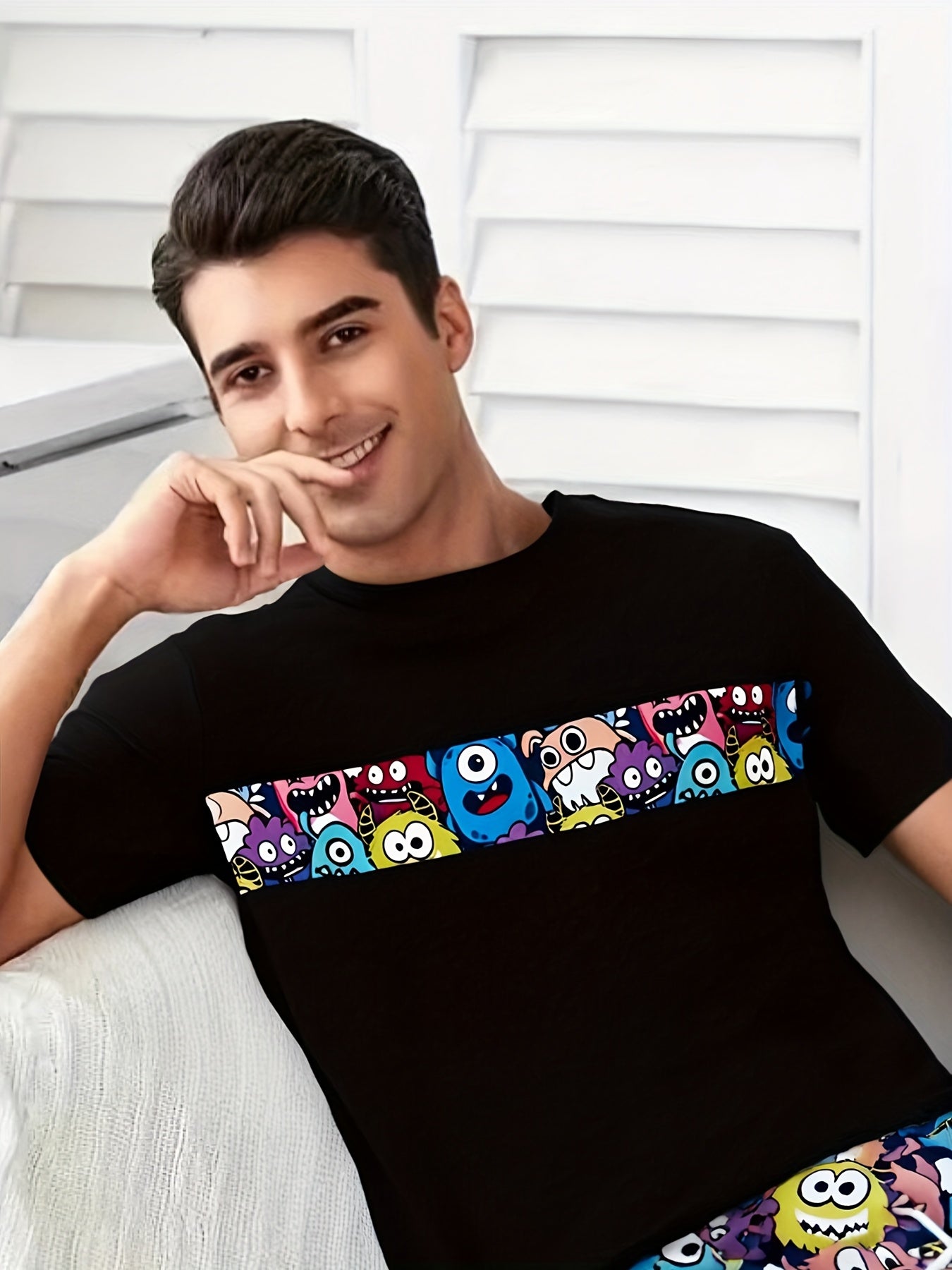Men's Lightweight Short Sleeve Pajama Set with Elastic Waist Shorts