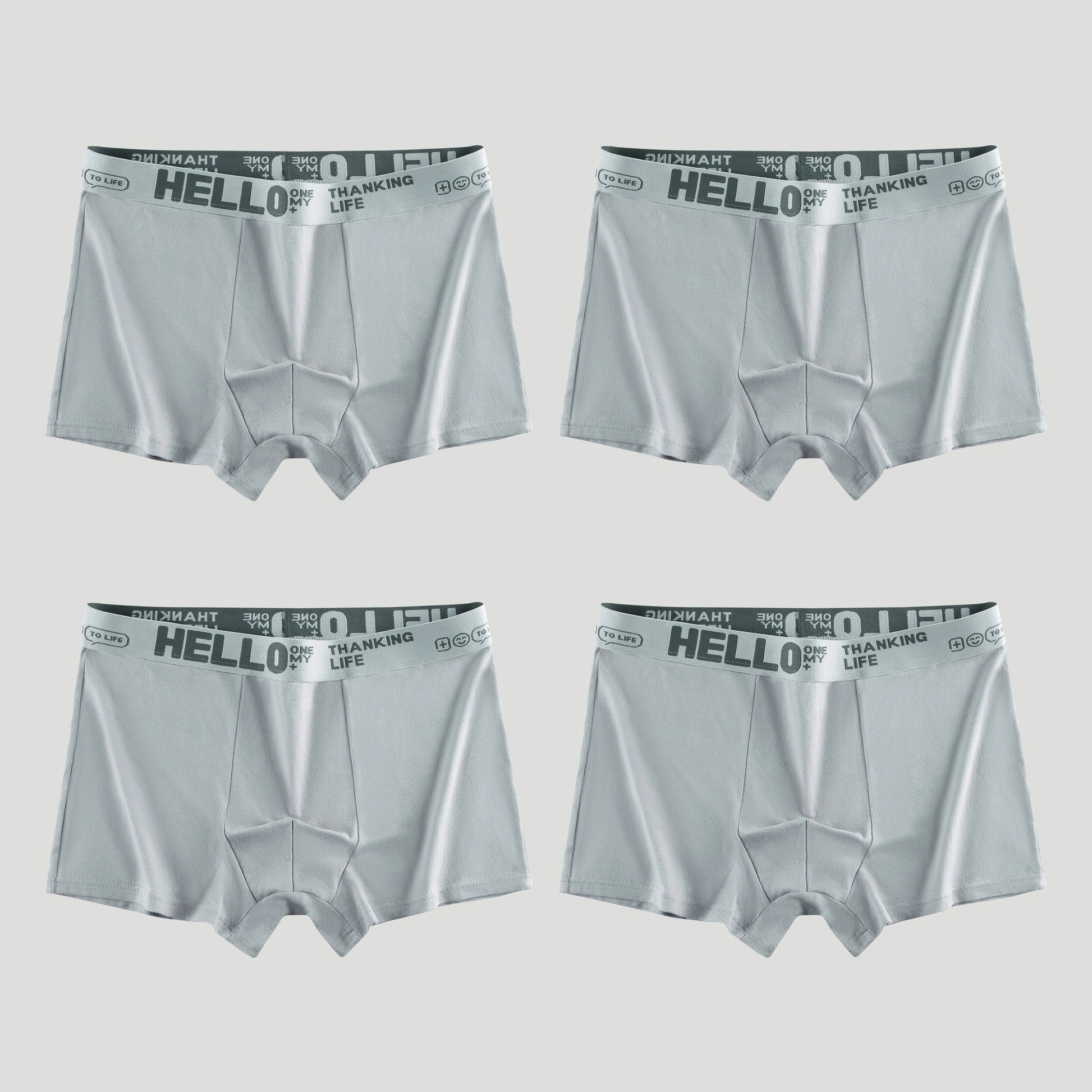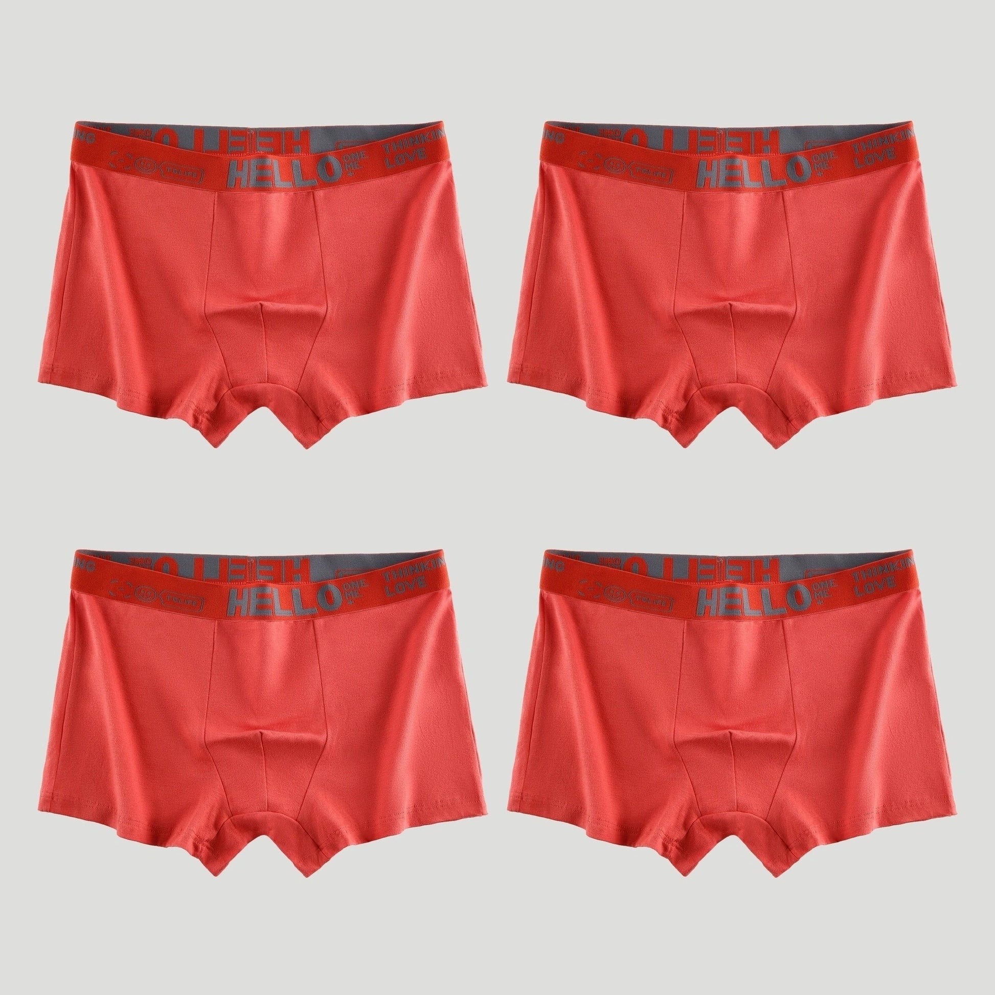Men's Cotton Boxer Briefs 4-Pack Breathable Comfortable Solid Color Shortie Underwear