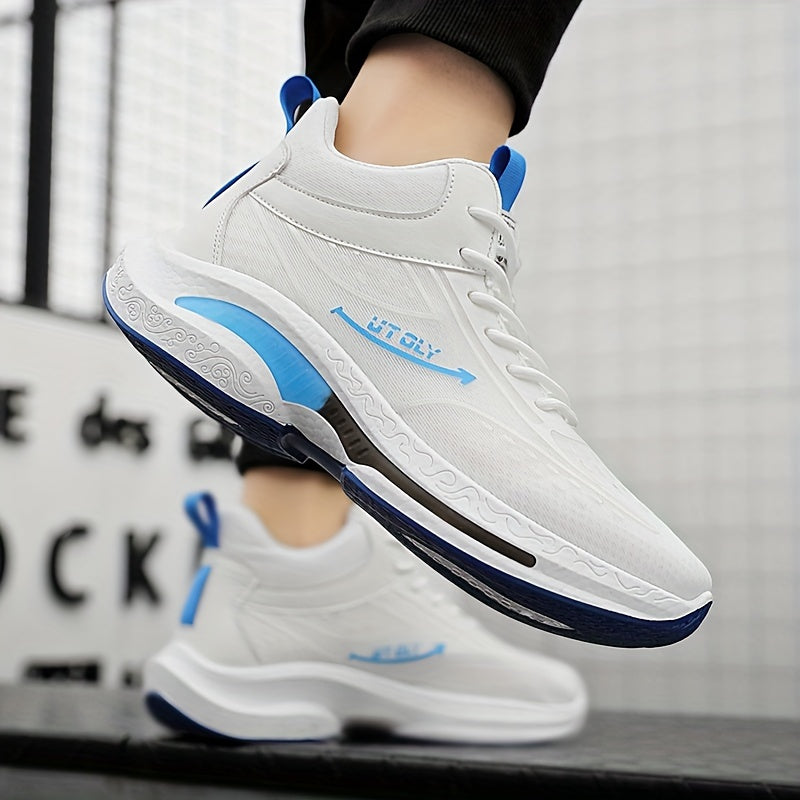 Men's Blue and White High-Top Athletic Sneakers Breathable Fabric PVC Sole EVA Insole Casual Outdoor