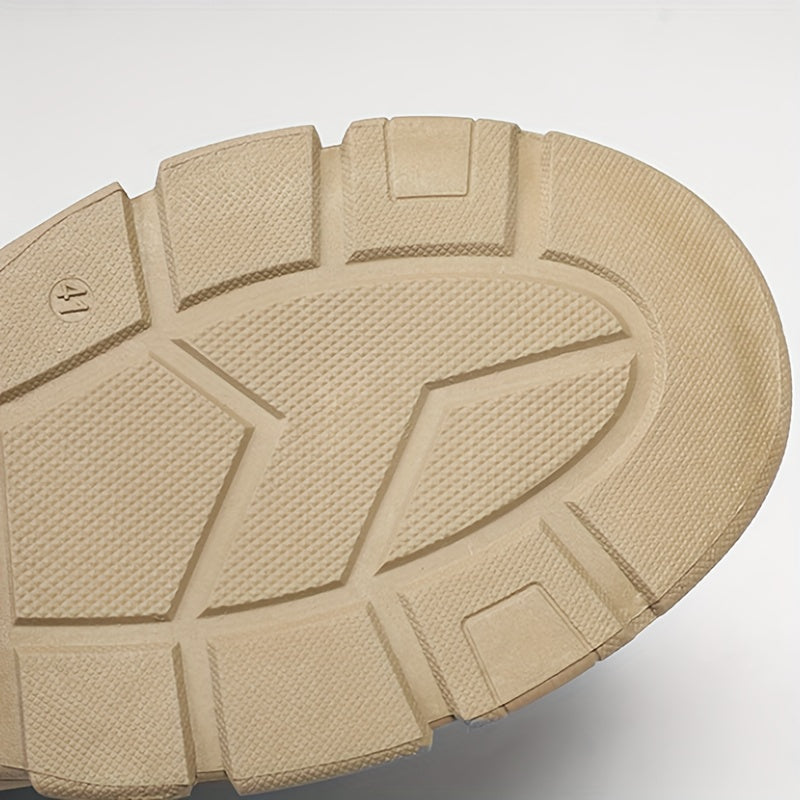 Men's Beige High-Top Work Boots Non-Slip Durable Casual Hiking PVC Sole
