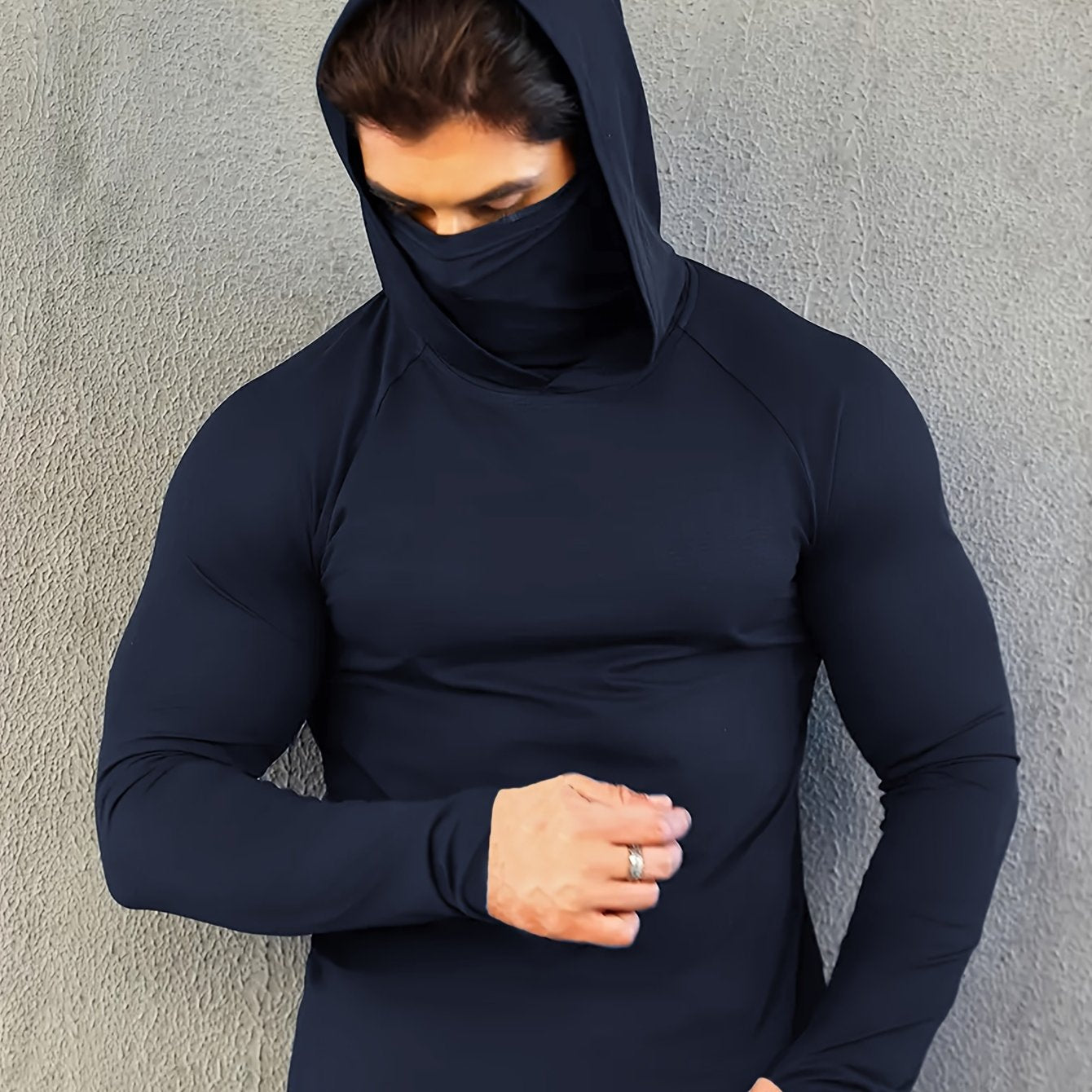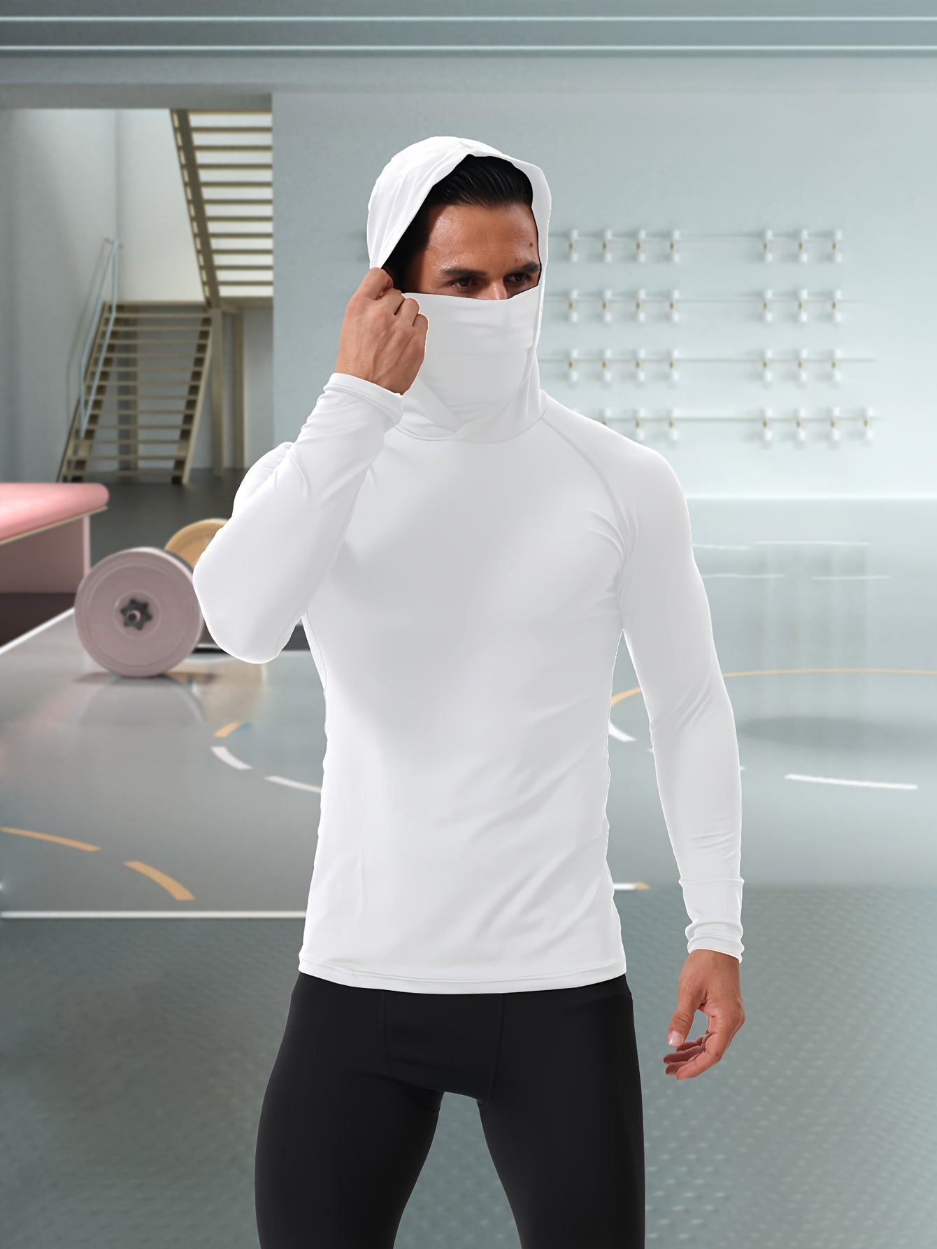 Men's Hooded Long-Sleeve T-Shirt with Mask Breathable Quick-Drying Compression Sports Top for Spring and Autumn