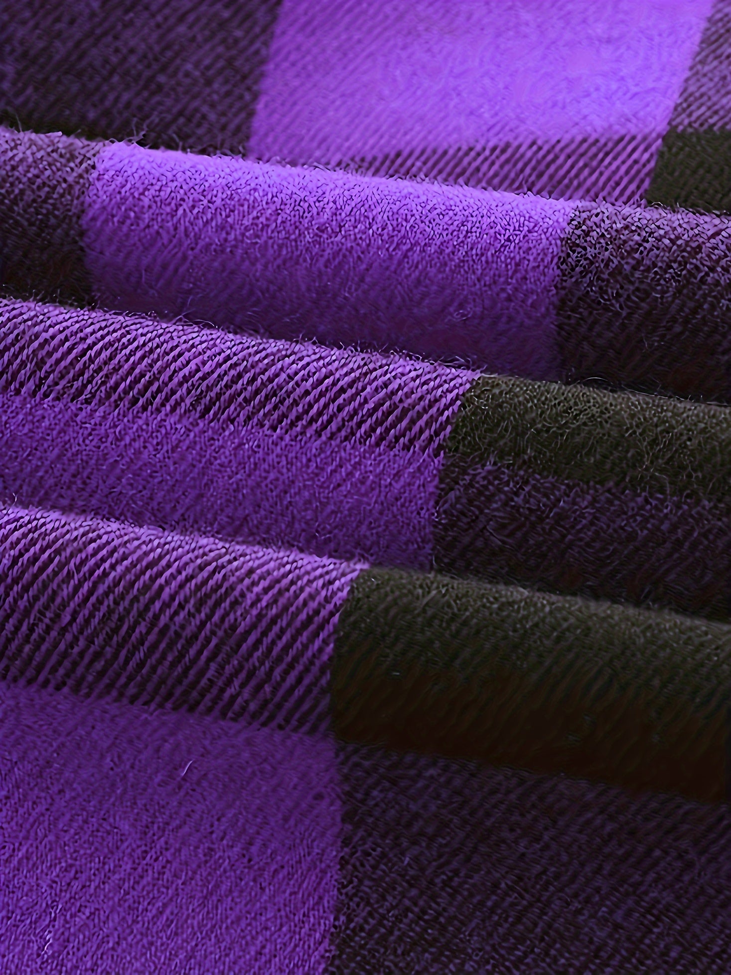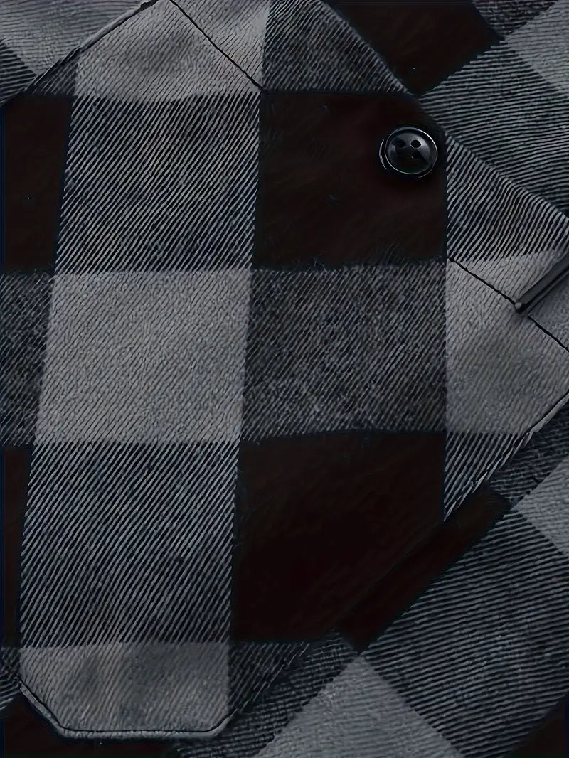 Men's Plaid Hooded Shirt Polyester Blend Casual Spring Fall Loose Fit Button Details